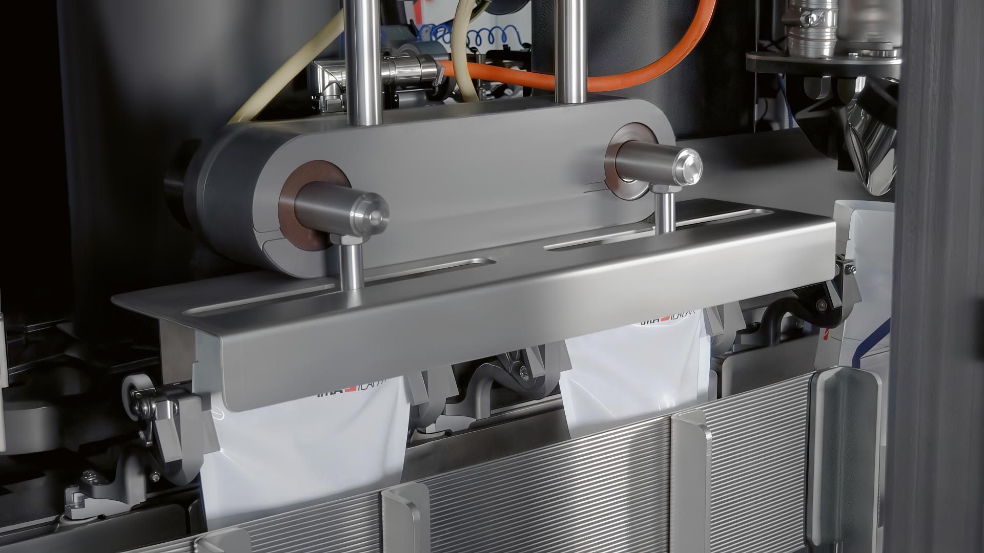 Innovative Pouch FFS machinery with unrivalled compact design thanks to vertical intermittent bag forming and horizontal filling stations with hybrid movement.