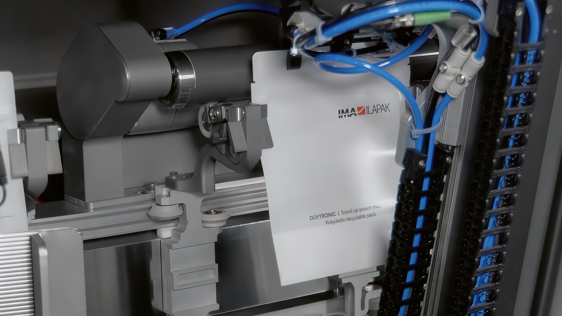 The Doytronic 120 by IMA Ilapak is a compact form-fill-seal machine that combines vertical bag forming with horizontal filling and sealing via a magnetic shuttle movement. This innovative hybrid configuration enables the machine to operate in tight spaces without compromising on performance or flexibility.