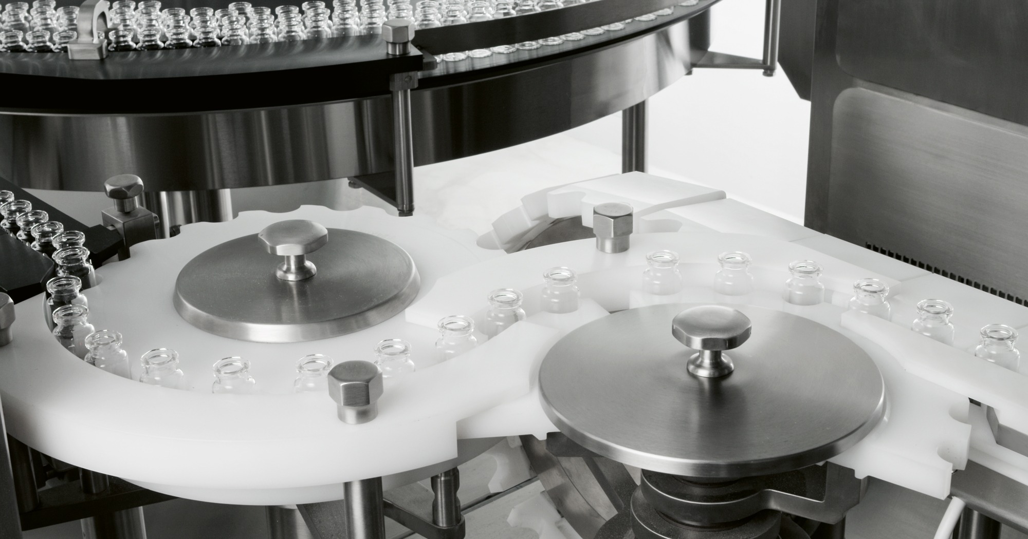 Easyfill PWD is a powder dosing and stoppering machine for vials, with an intermittent-motion, in-line positive transport system. Available in two models, it covers low and medium-speed requirements.