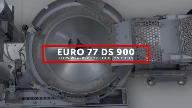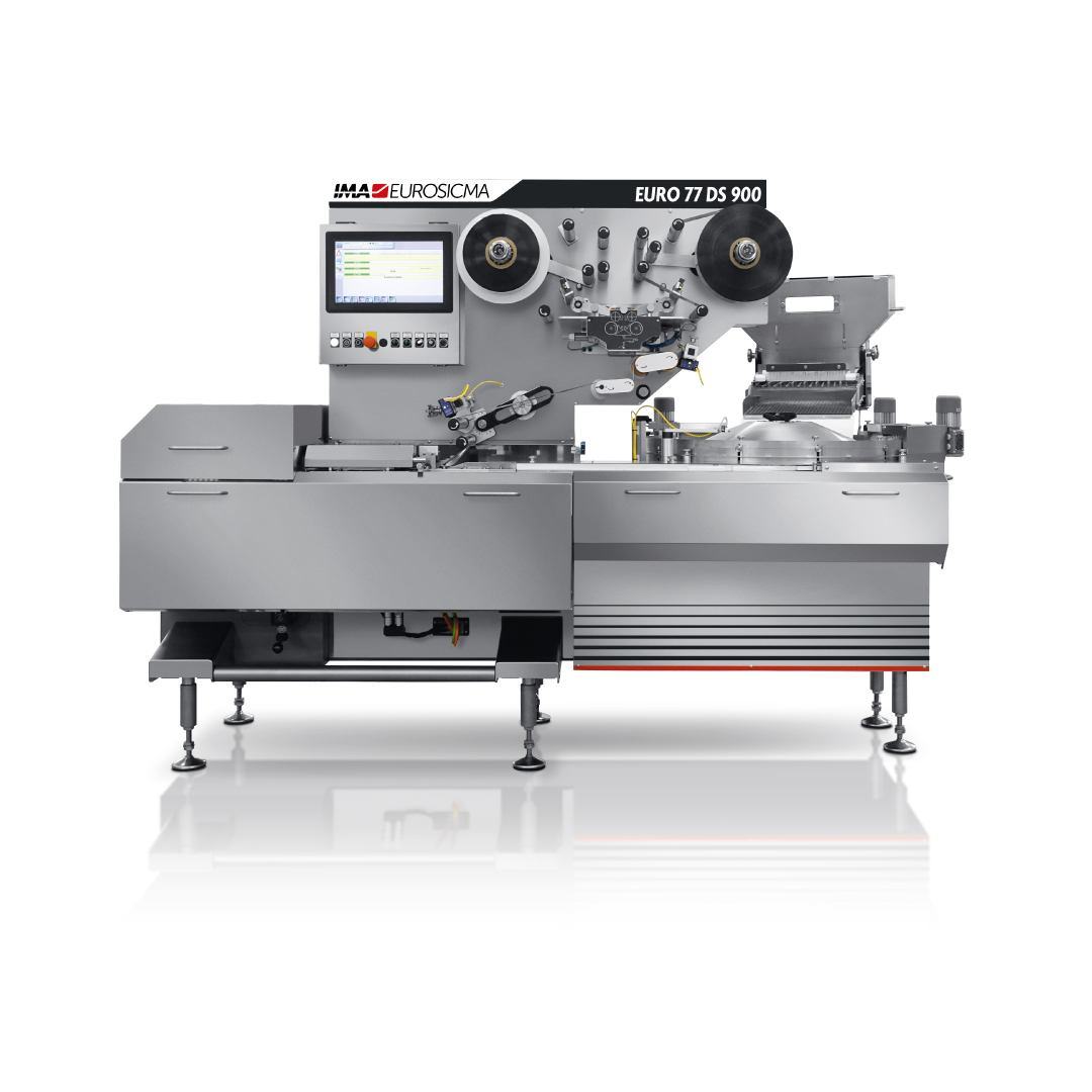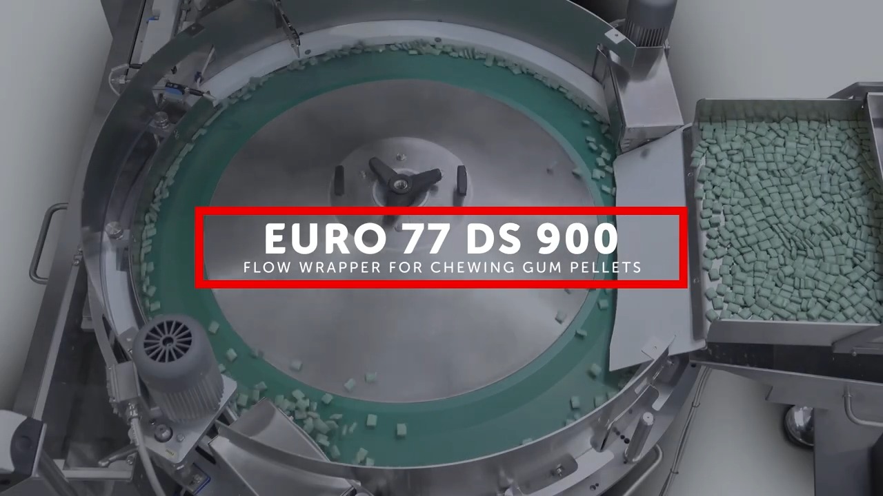 Able to reach a speed of up to 2.000 ppm with round and regular shaped hard candies, the EURO 77 DS 900 is a fully digital horizontal flow wrapper, named by the diameter of the centrifugal disc feeder: 900mm.