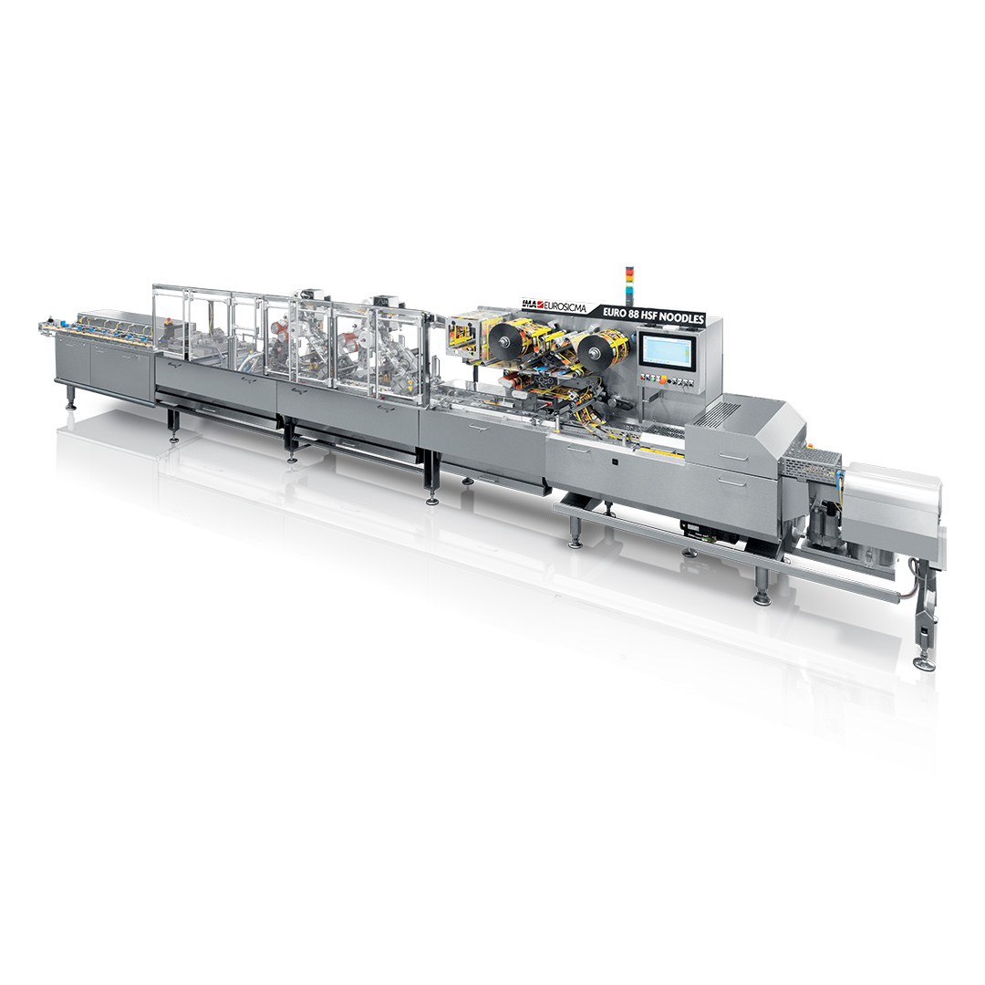 The EURO 88 HSF NOODLES is designed to be seamlessy integrated into fully automated packaging line, satisfying a wide range of flow pack configurations, from single to multipacks.