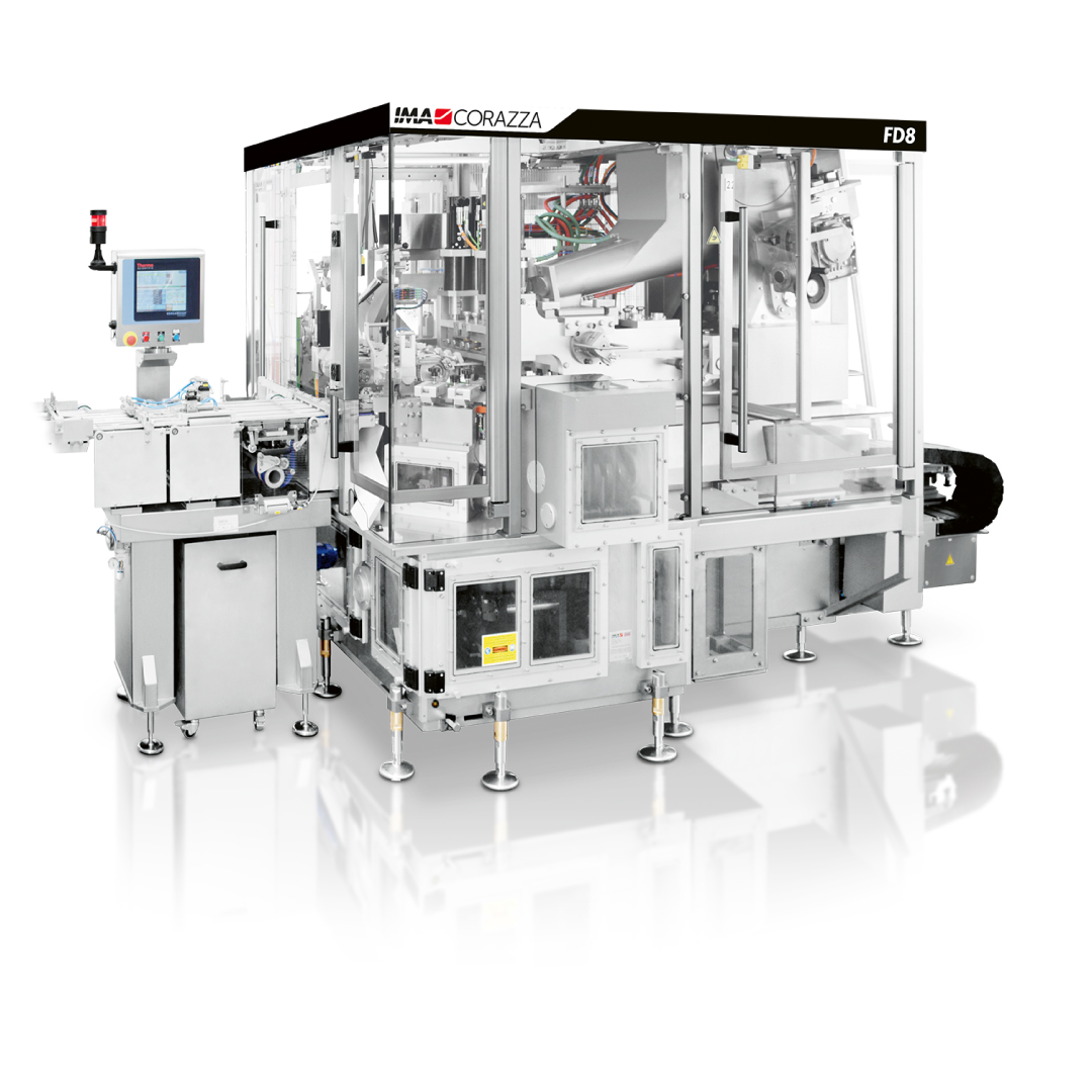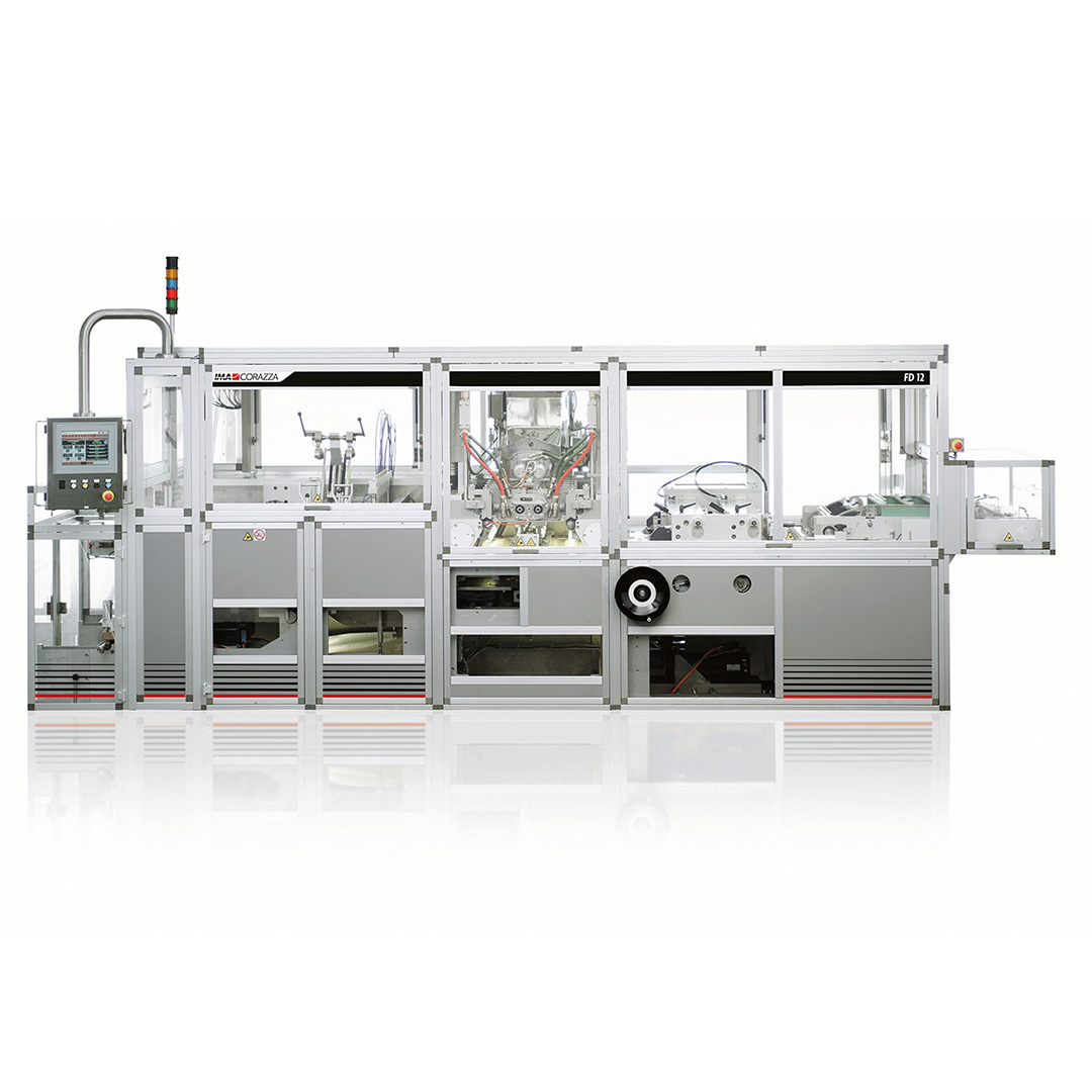 The FD Series is designed to meet the full range of customer requirements in terms of processing speed and productivity. For maximum output, the high-speed FD12 reaches 1,200 ppm, filling preformed foil segments along an 8lane inline conveyor before folding and pressing them closed with consistent quality.