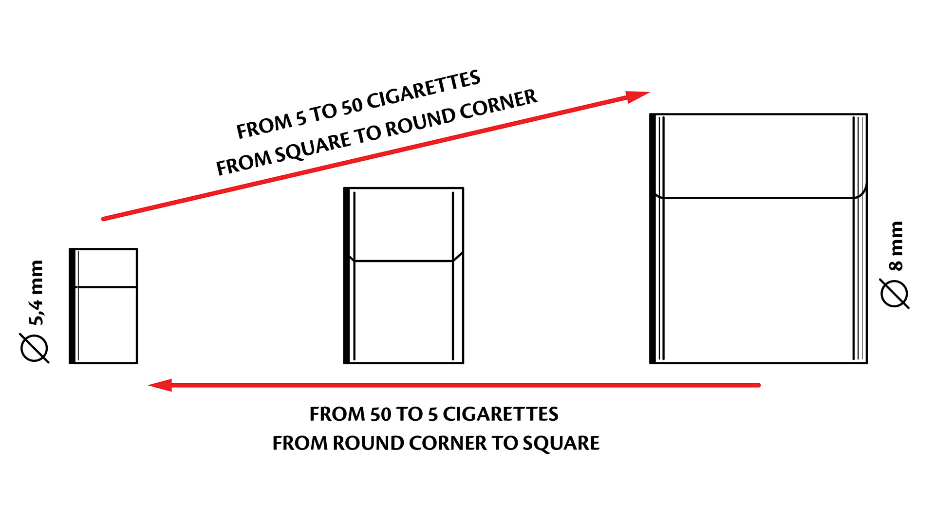 The flexibility of these machines makes them perfect for producing different packet sizes, from 10 up to 50 cigarettes per packet, or special innovative packs.