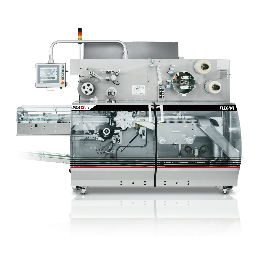 FLEX-WF is a simple and fast wrapping machine with a very quick format changeover. It can handle the same range of packets as the FLEX-A family, including all the different special packs, and is equipped with all the features required by the tobacco industry: tear-tape application and registration, printed poly centering, poly code printing, heating belt for film shrinking and camera controls for packet quality.