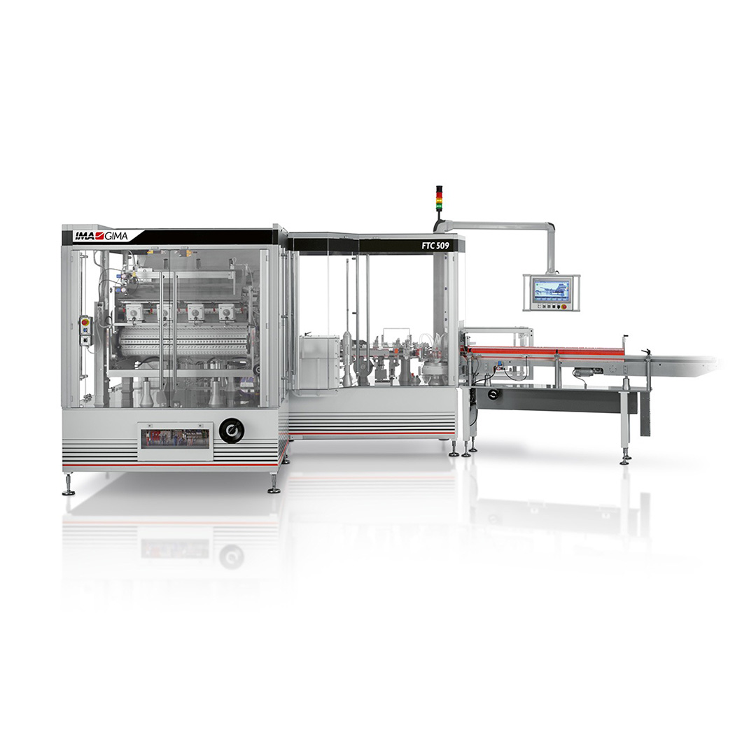 IMA Gima vertical dosing and filling FTC Series can manage soft and rigid containers such as cartons, bottles, tins and jars with cylindrical, square and irregular shape.