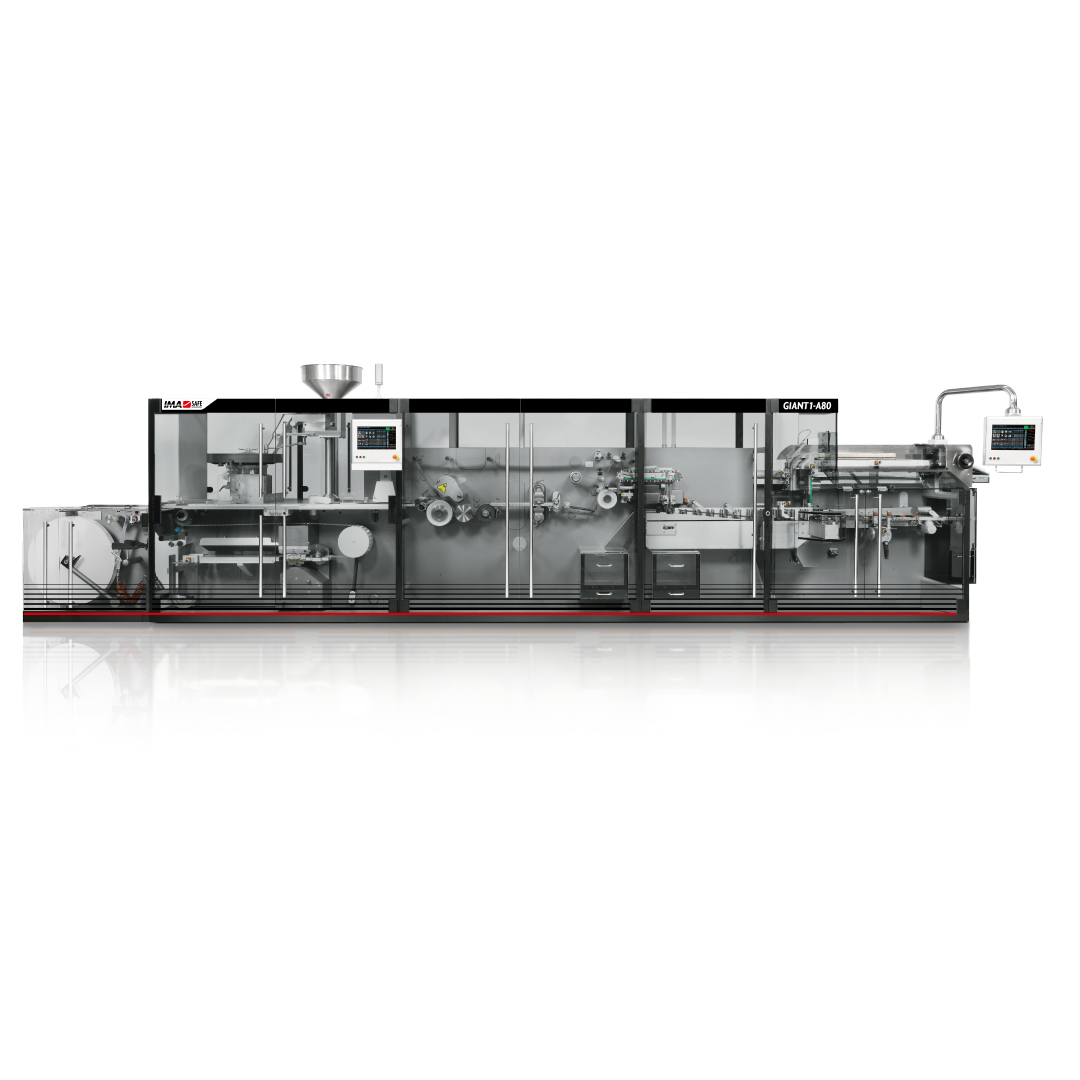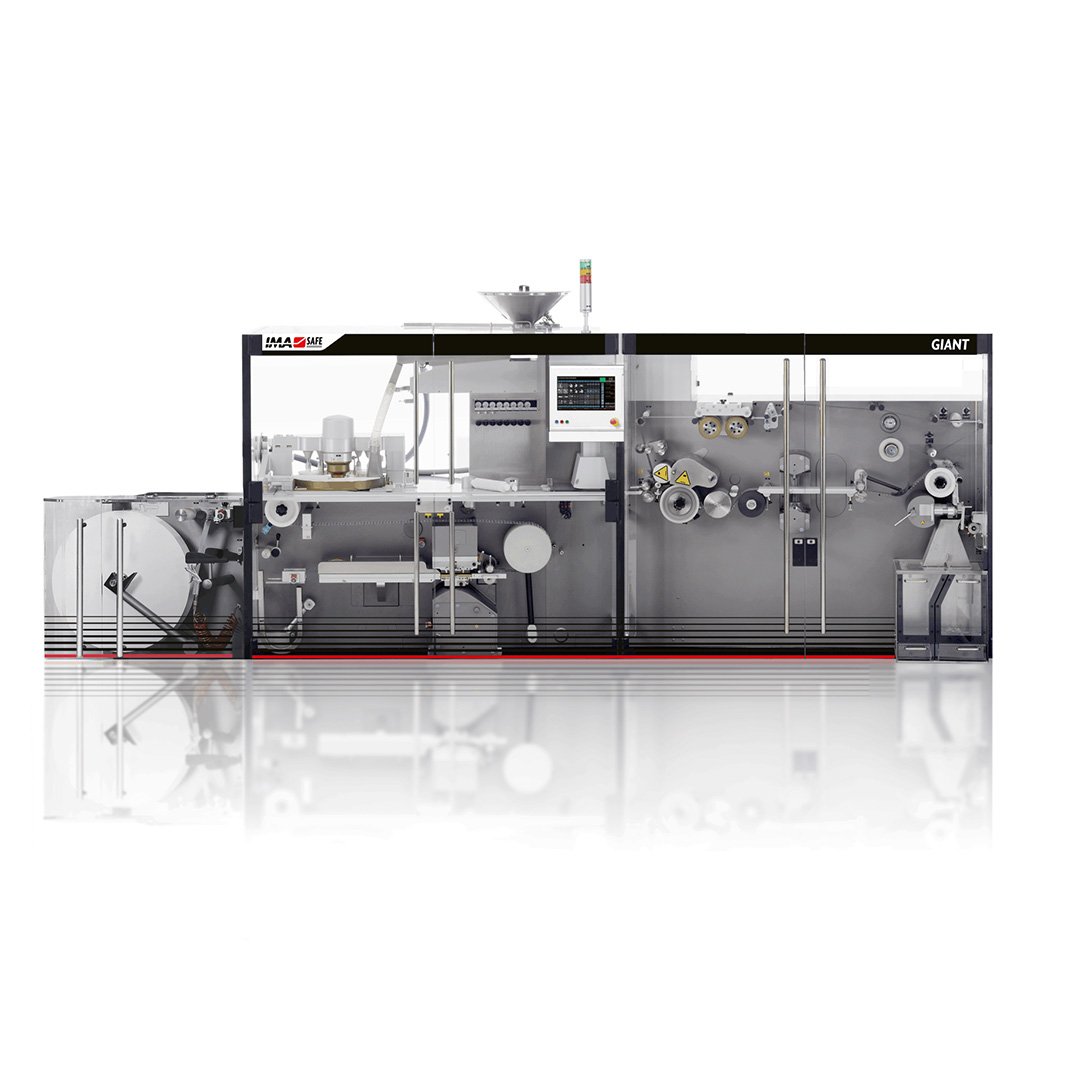 The Giant1 series of blister-packaging machines grants the widest flexibility in terms of product shapes, blister sizes and configurations, and is the ideal solution for just-in-time production of small-medium batches. State-of-the-art technology in terms of design, feeders, quality controls and servomotors.