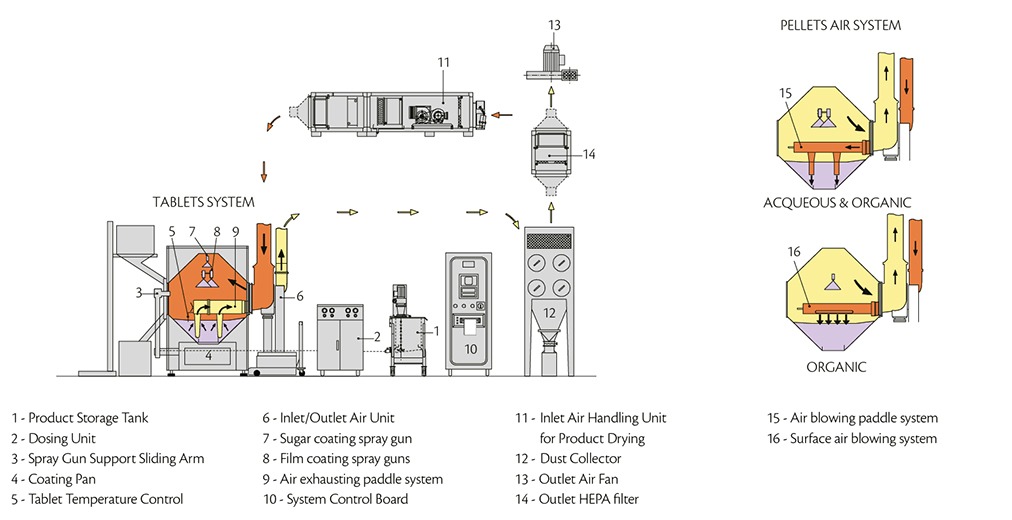 Perfect mixing and uniform distribution of coating material thanks to the optimised pan design and surface smoothness, combined with a patented drying system for superior efficiency and consistency.
