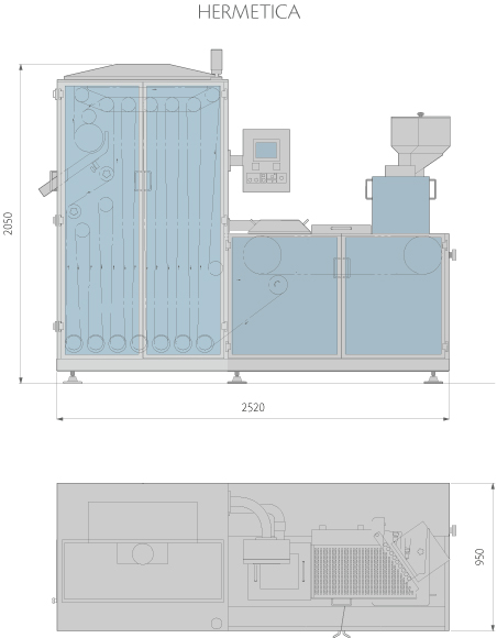 Suitable for tamper-evident capsule sealing, Hermetica, born from experience that began in the 1970s, has an ergonomic layout guaranteeing maximum visibility and best accessibility to each phase of the process.