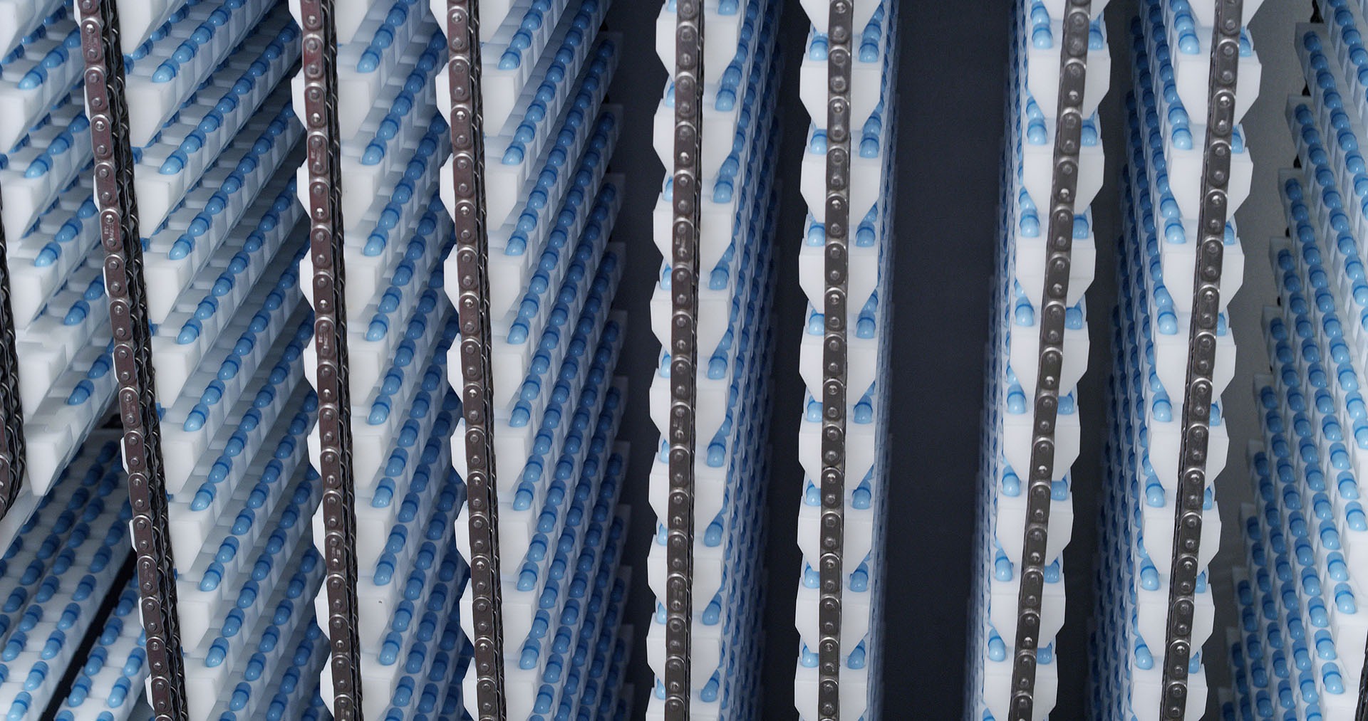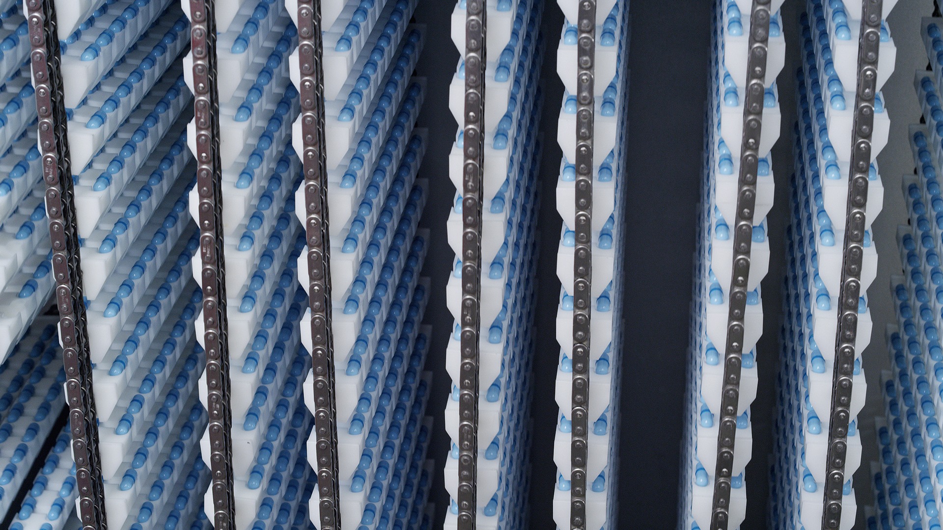 Both sealing and drying transport plates contain a double row of capsules, thus halving the pieces to change and clean.