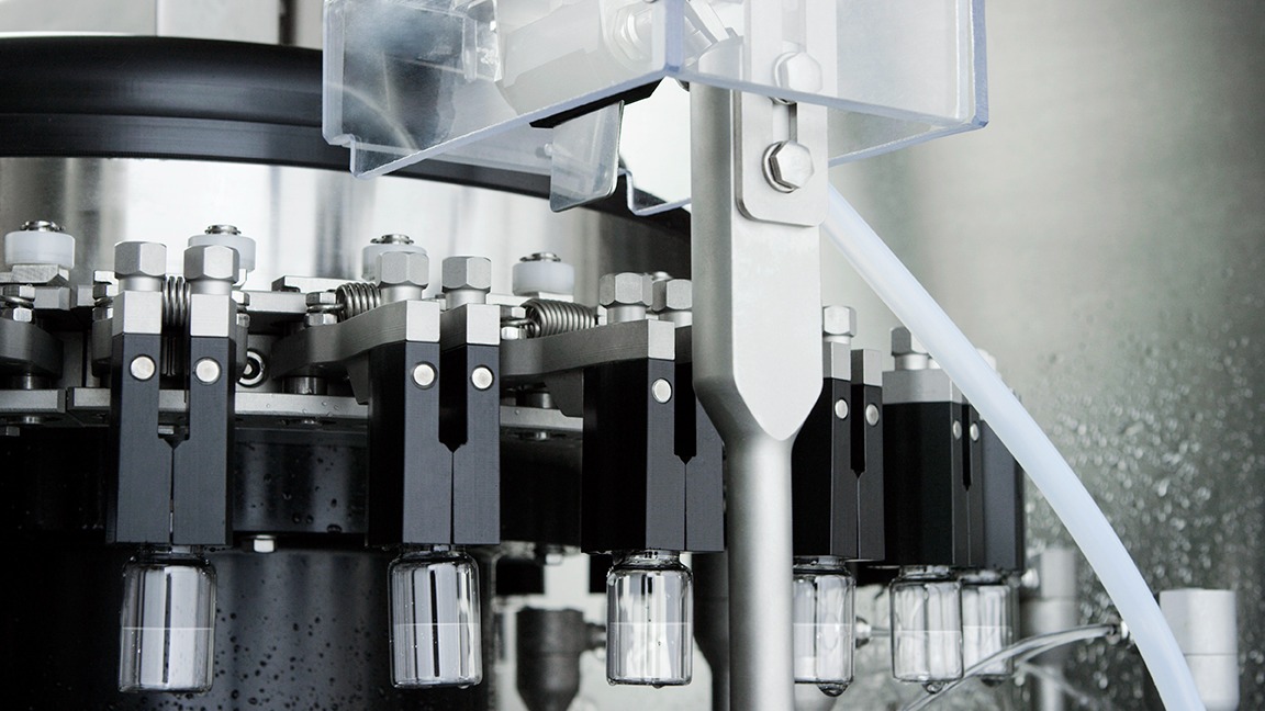 These external rotary washers have been designed to perform the decontamination of external surfaces of cylindrical containers made of glass or plastic (bottles, vials, etc.) potentially contaminated by the product during the filling process.