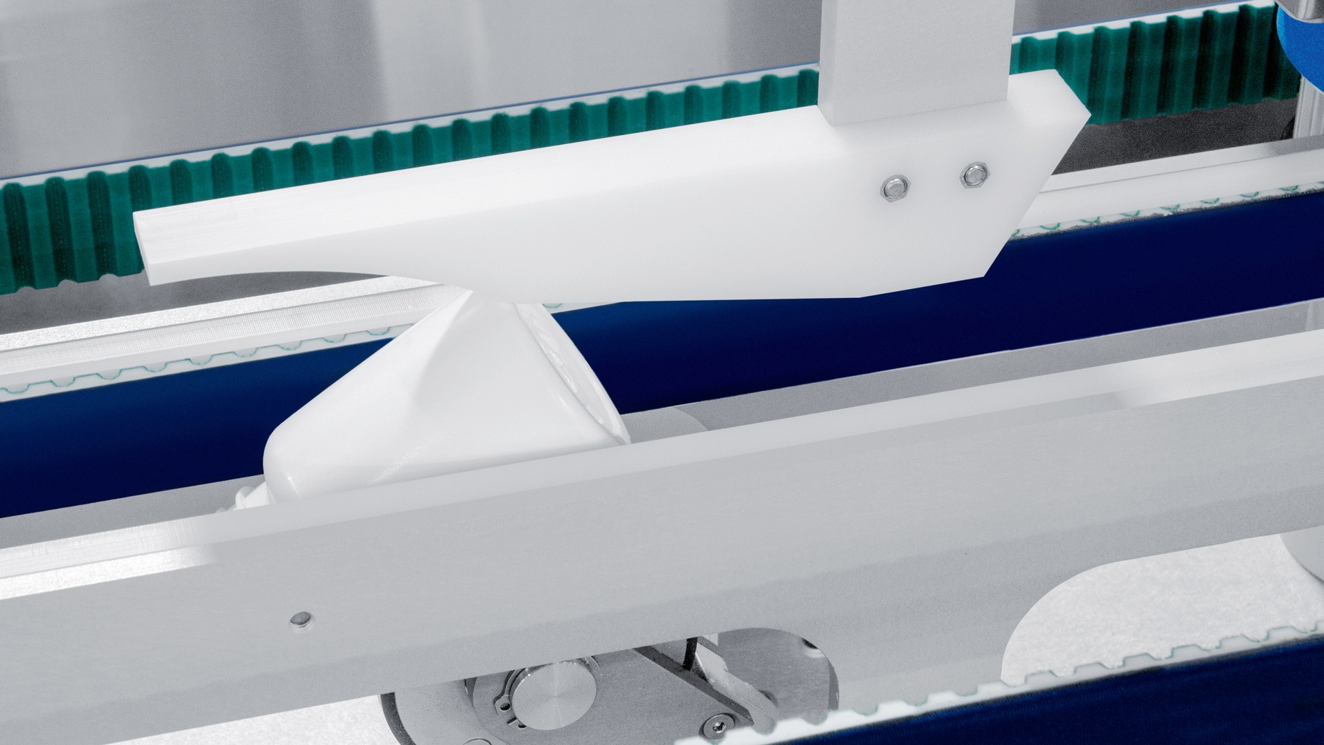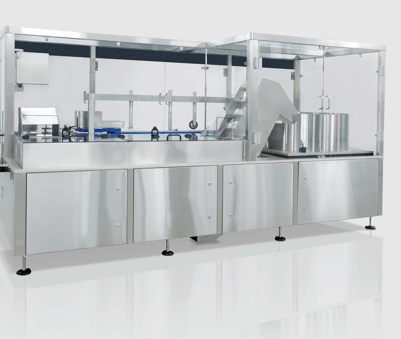 A fully interlocked enclosure provides operator safety and very low noise emission while ensuring complete visibility of the entire operation. The integrated inspection/rejection system ensures that any upside-down or fallen bottles are automatically returned to the bulk hopper. This avoids the need for the operator to recycle the bottles and ensures maximum efficiency.