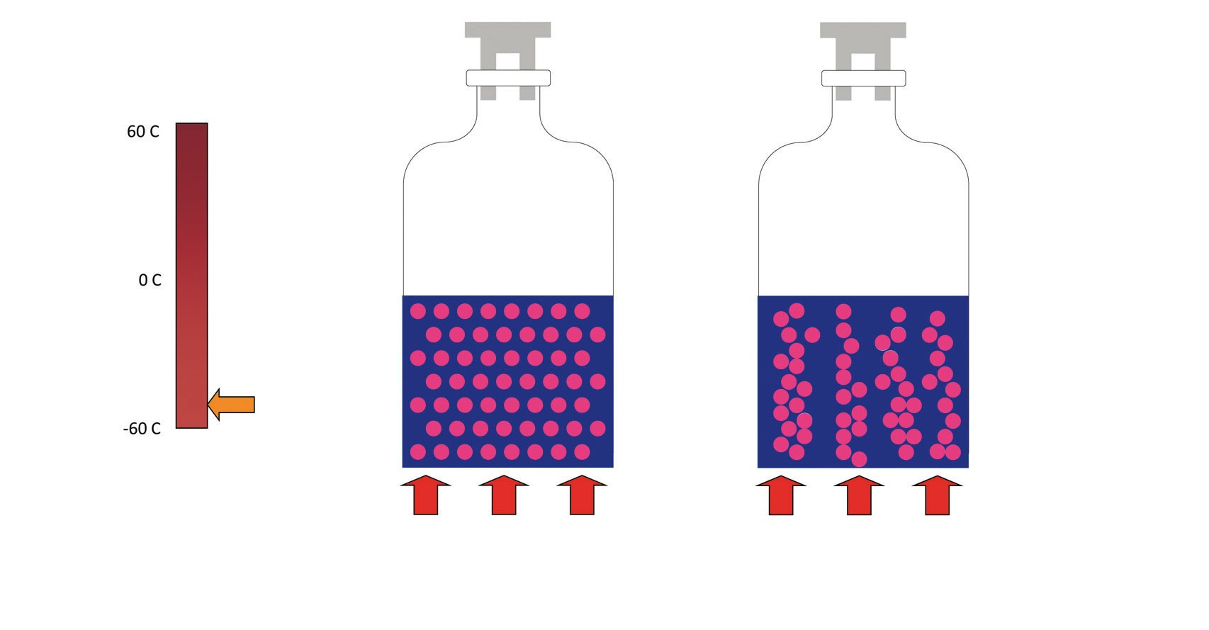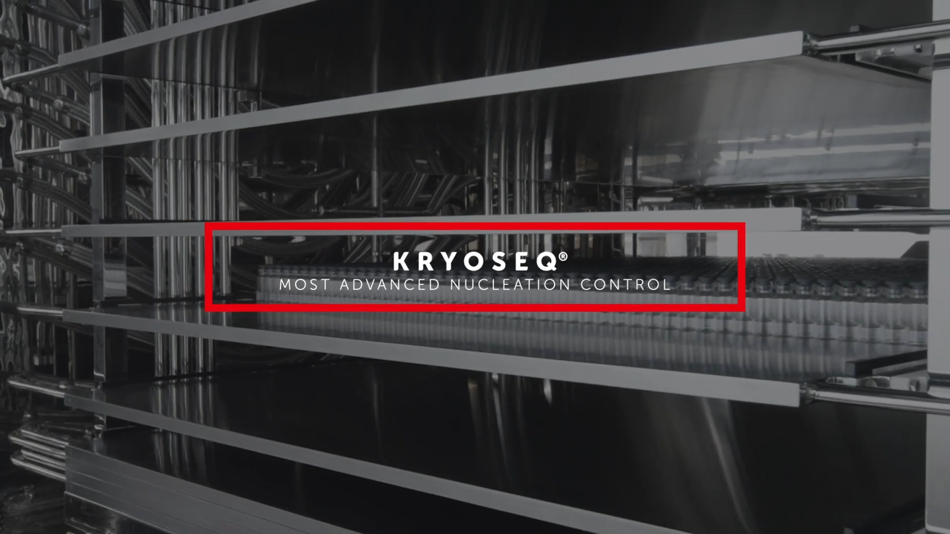 KRYOSEQ® nucleation uses liquid nitrogen and water vapour to create a cryogenic fog or “kryo fog”. This fog permeates the product chamber and enters the vials that contain the supercooled liquid solutions. As soon as the ice crystals come into contact with the surface of the product, nucleation proceeds rapidly from the top of the vial to the bottom.
