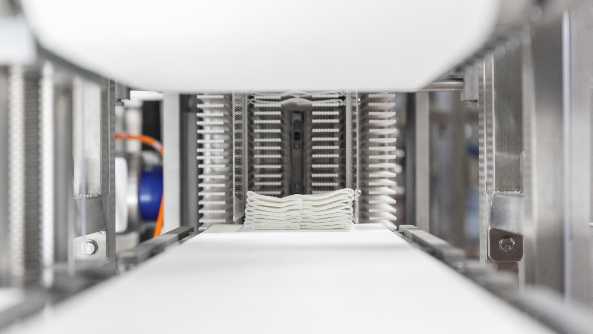 The machine combines an high absorbency core contained within two layers of nonwoven, welded and folded over: result is an extremely effective mop, using the minimum amount of material. Layers are solidly bonded together through ultrasonic welding avoiding the use of glue, which would make the product extremely strong. MARK II Floor can be equipped with the application of scratching stripe on the side to improve effectiveness of mopping operation.