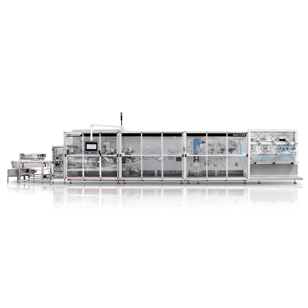 MARK II Floor is a fully automatic converting machine for disposable floor mops, configurable both with flow packs packaging or plastic trays with sealed film on top and cap.