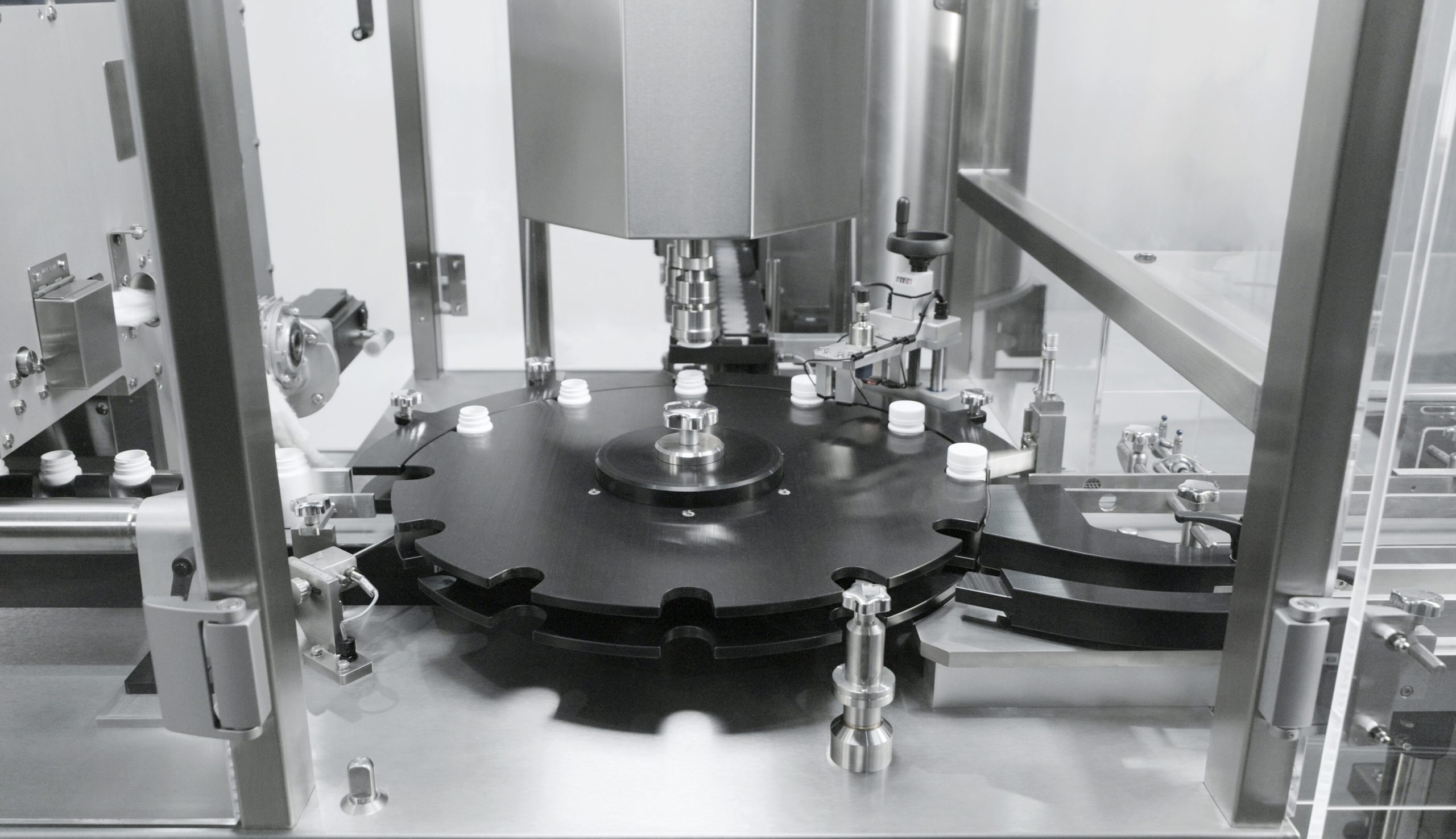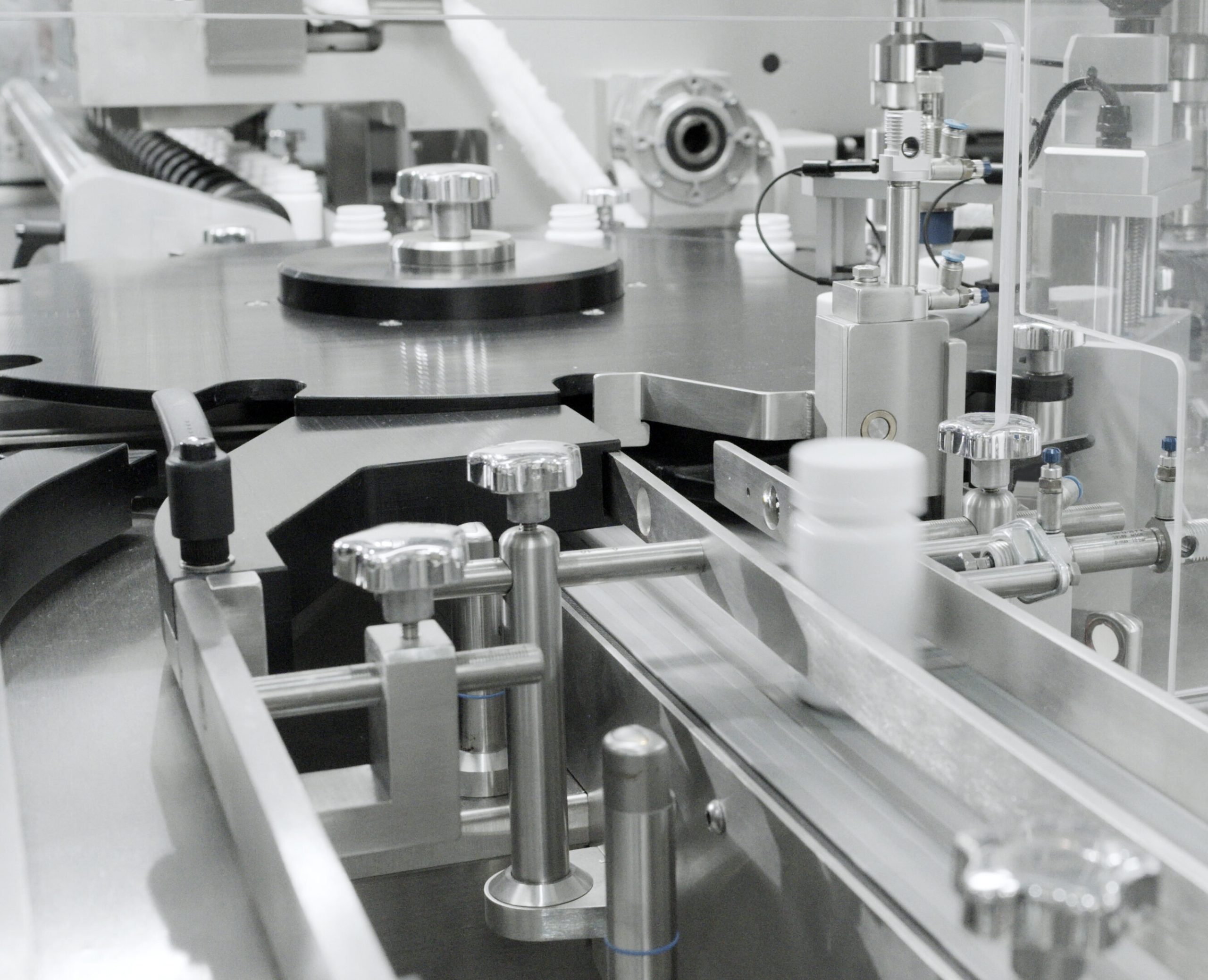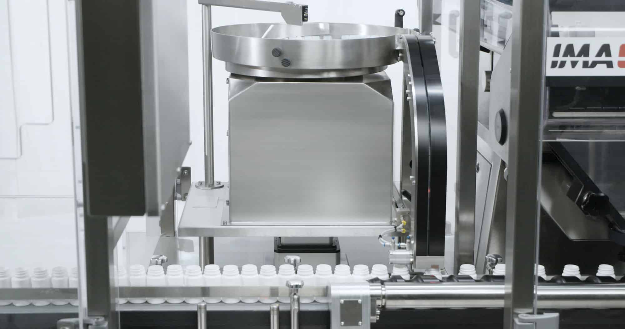 MINILINE is a bottle transport, filling and capping system that can integrate all the functions required to form a complete tablet and capsule counting line with a simple footprint.