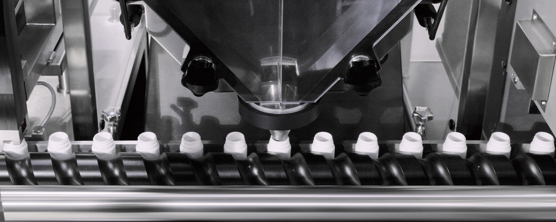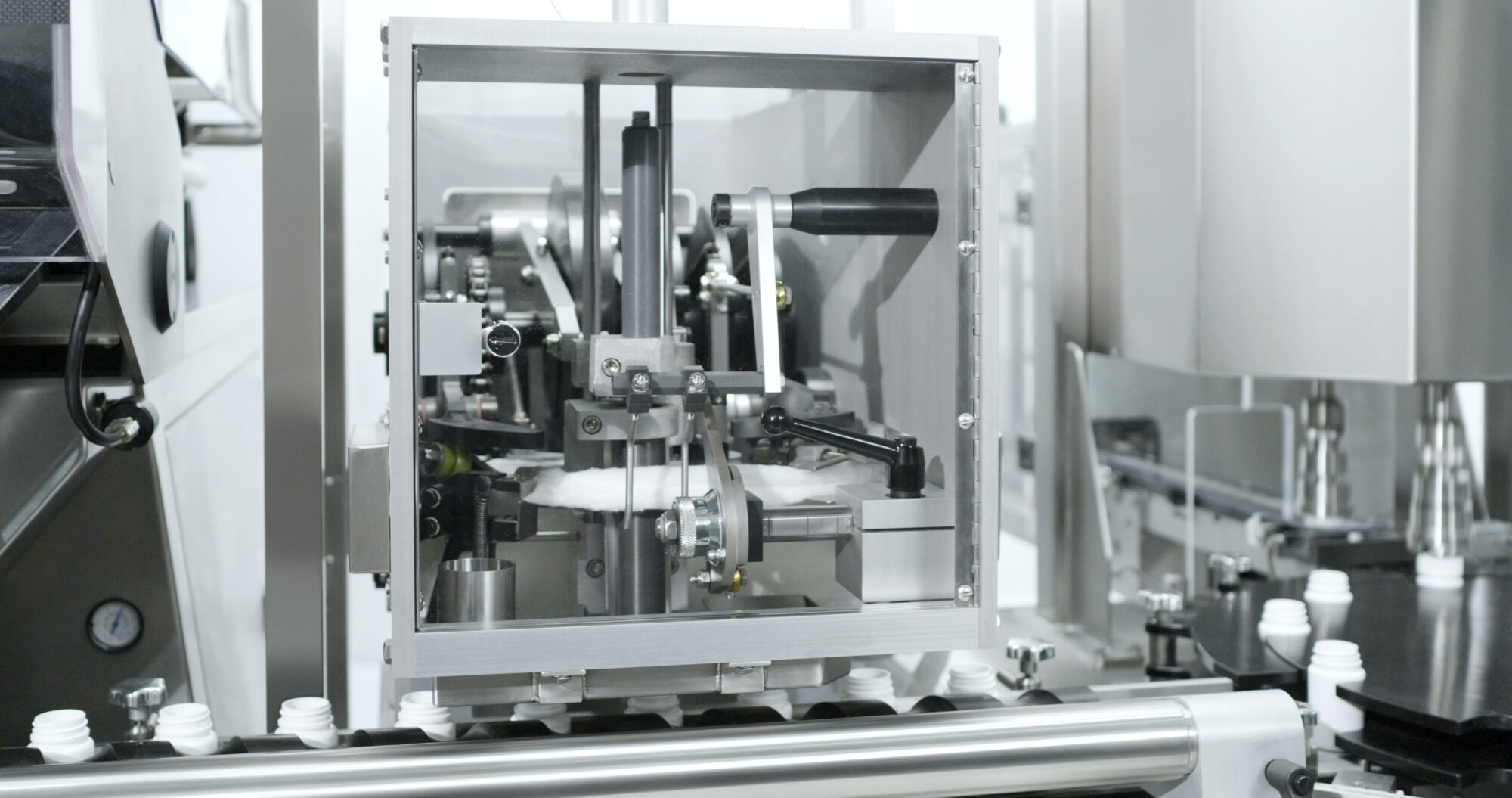 MINILINE is a bottle transport, filling and capping system that can integrate all the functions required to form a complete counting line with a simple and superior footprint: desiccant insertion, tablet or capsule counting, cotton insertion, capping and induction sealing and can be configured for any product or container requirement.