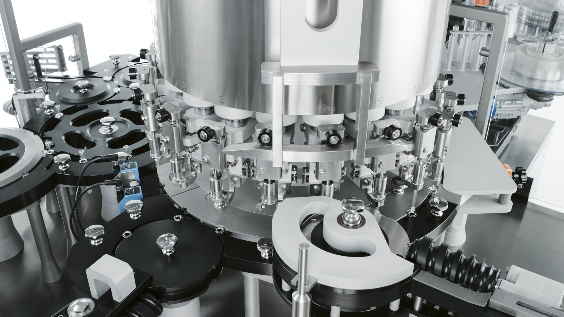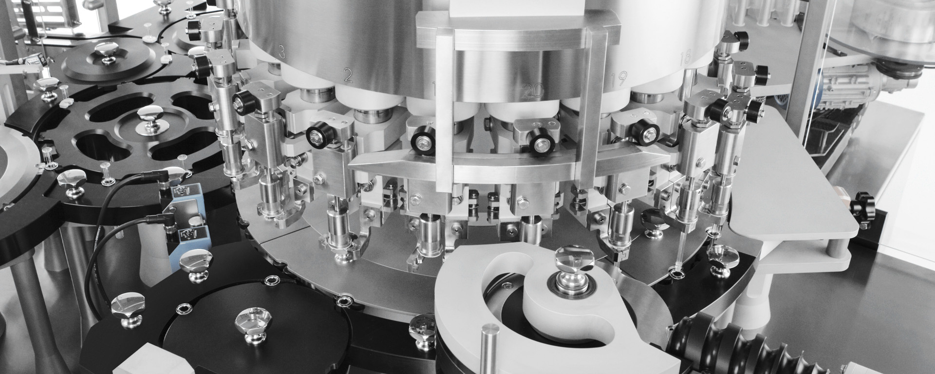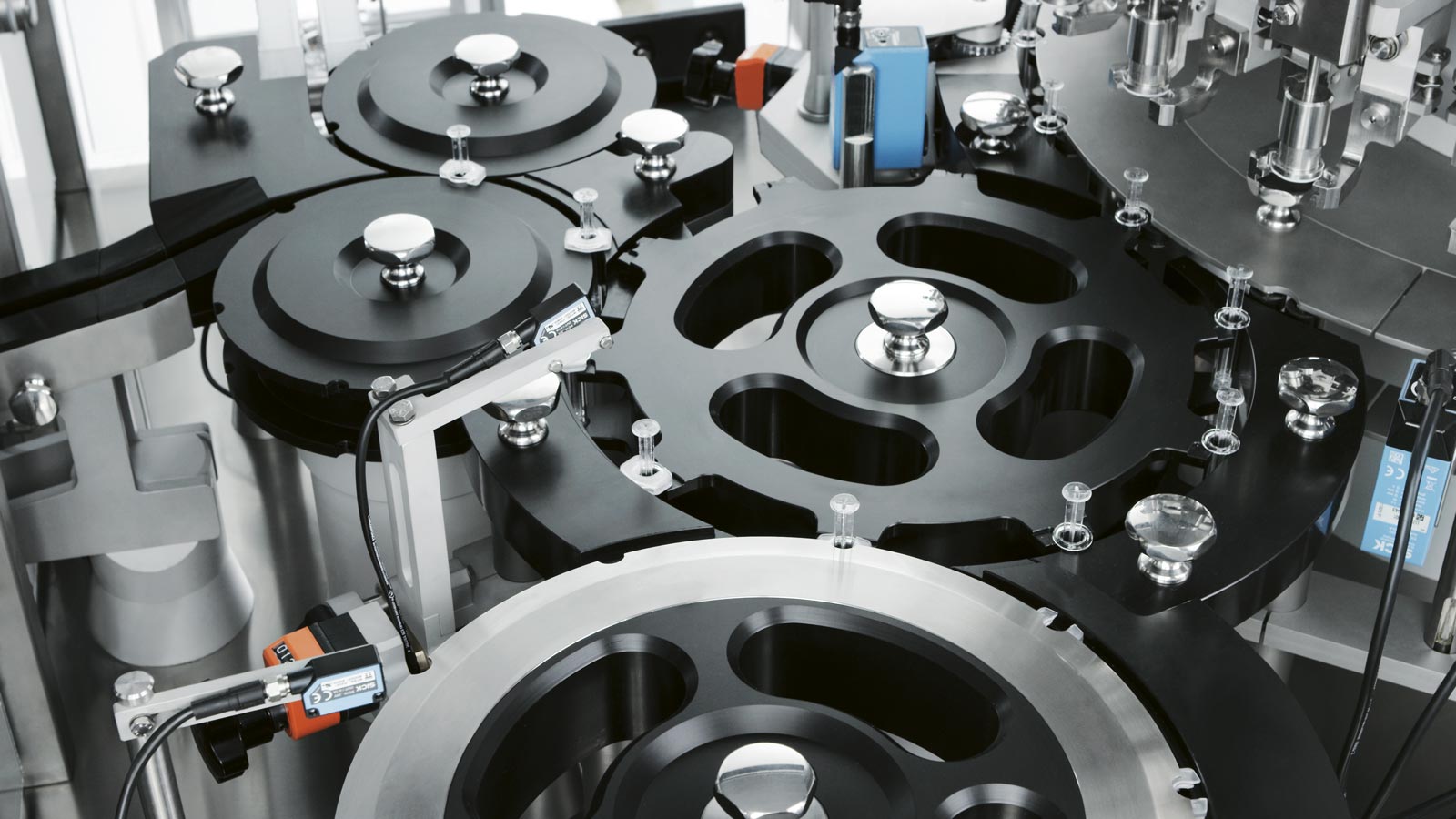 Various types of sensors can be installed to check plunger rod presence and height, label application, backstop presence, flying labels on carrousel, rejection, etc.