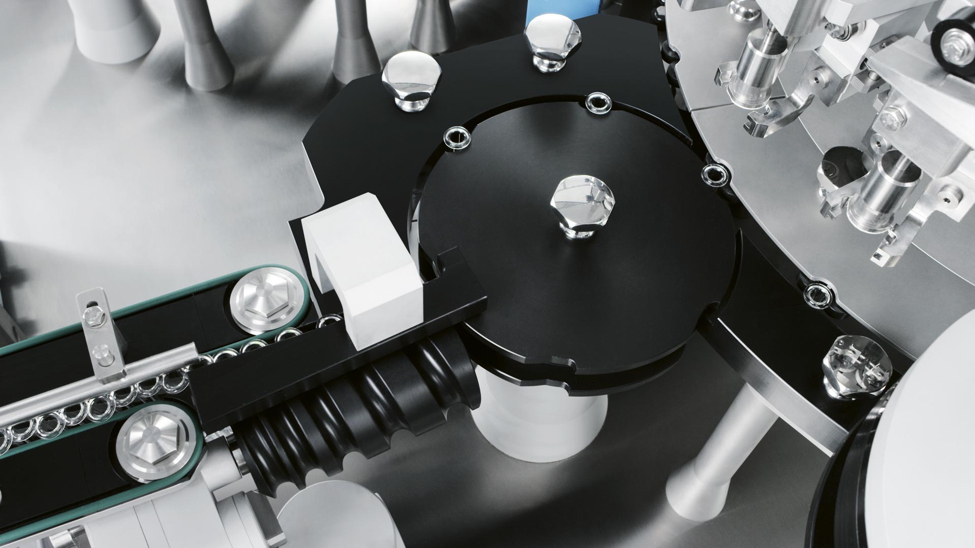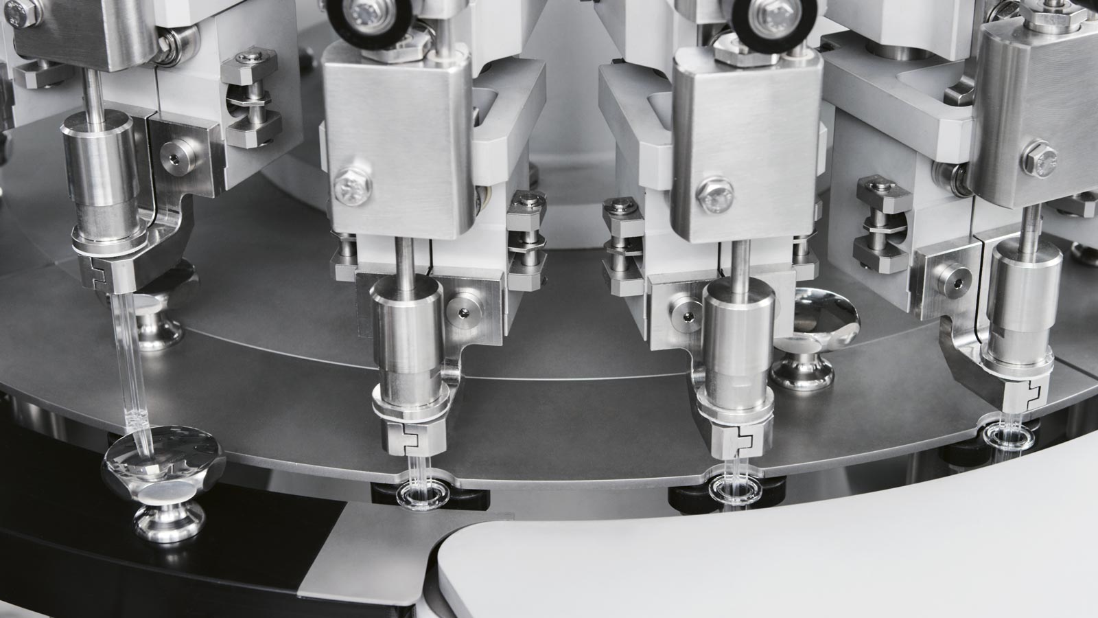 The machine features a central transport carrousel, which delicately guides the syringes through all steps and a positive transport system of the syringes and all the components requiring assembly, so as to ensure high precision in each phase.