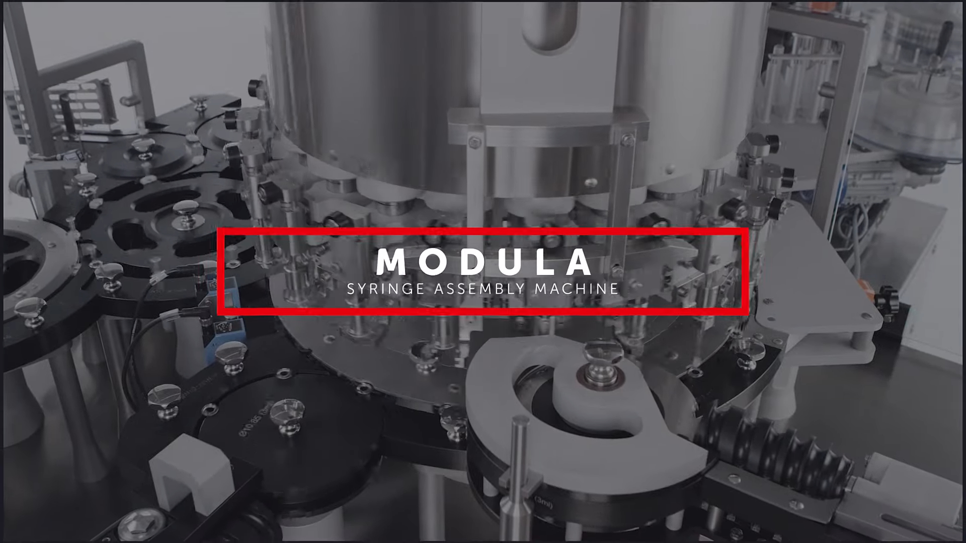 MODULA is an assembly machine for pre-filled glass syringes capable of performing several operations: plunger rod insertion, labelling, backstop assembly.