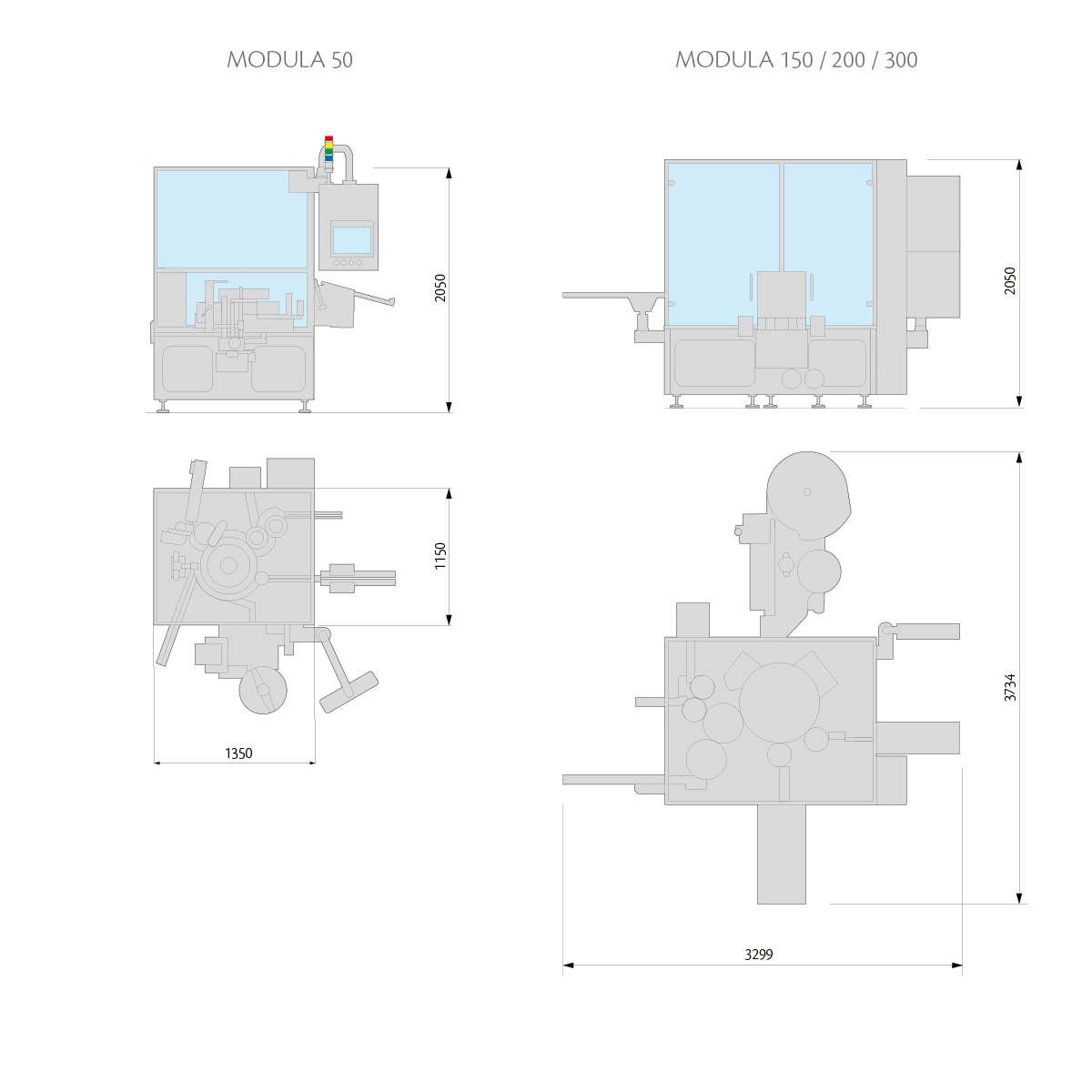 | MODULA 50 | MODULA 150 | MODULA 200 | MODULA 300 | |