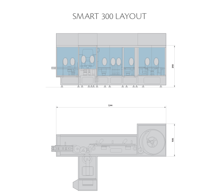 SMART 300 is the answer to the increasing demand for even more flexible and versatile liquid processing solutions. Short start-up times, easy changeovers and a high degree of automation are key considerations. Particularly suited to medium to high batch production, configured to handle glass and plastic vials within the SVP (small volume parenterals) filling range, the machine is completely servo-driven and can reach up to 300vpm, while ensuring 100% IPC of all vials filled.