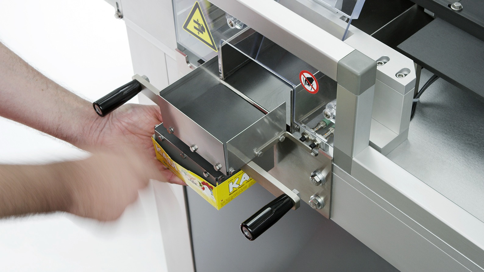The SP98D double-head loading-device machine is conceived to package hard soup cubes into cardboard boxes. The machine divides and stratifies the soup cubes according to the selected size, thus creating the pack. During the ejection step, the aforesaid pack will be introduced into a cardboard box.