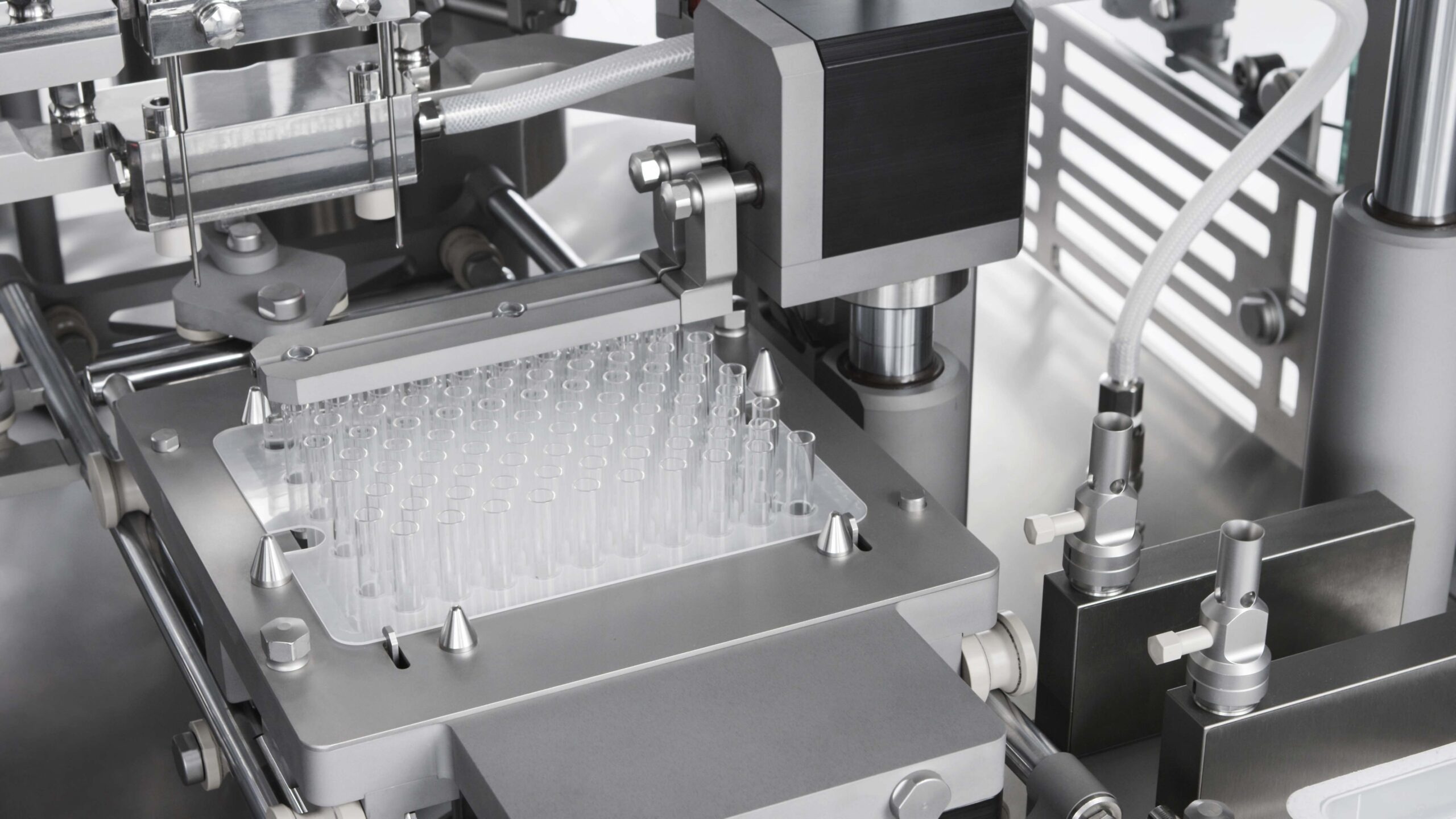 Downstream connections with D-NEST, syringe and vial denesting machine.