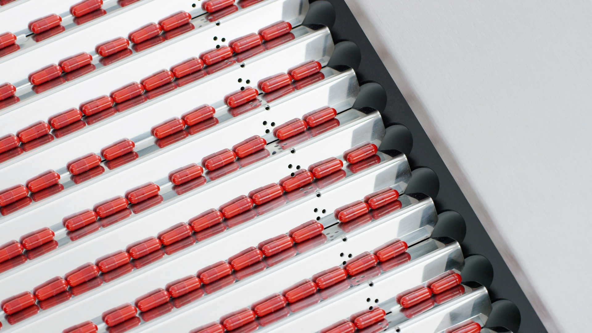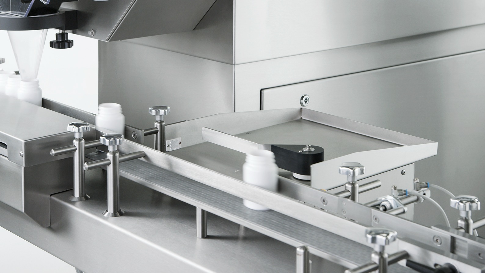Flow control through counting rate feedback for more accurate tablet flow control. No maintenance required.