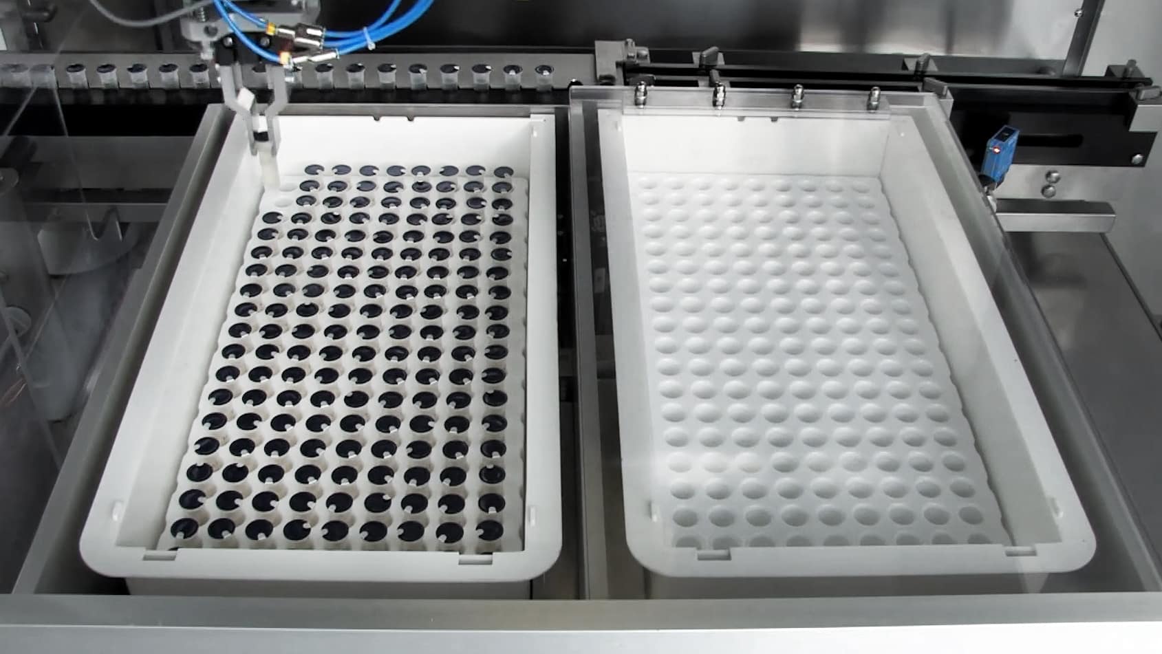 Smooth tray handling (thermoformed or plastic injection), which can be nested, de-nested and oriented according to specific requirements.