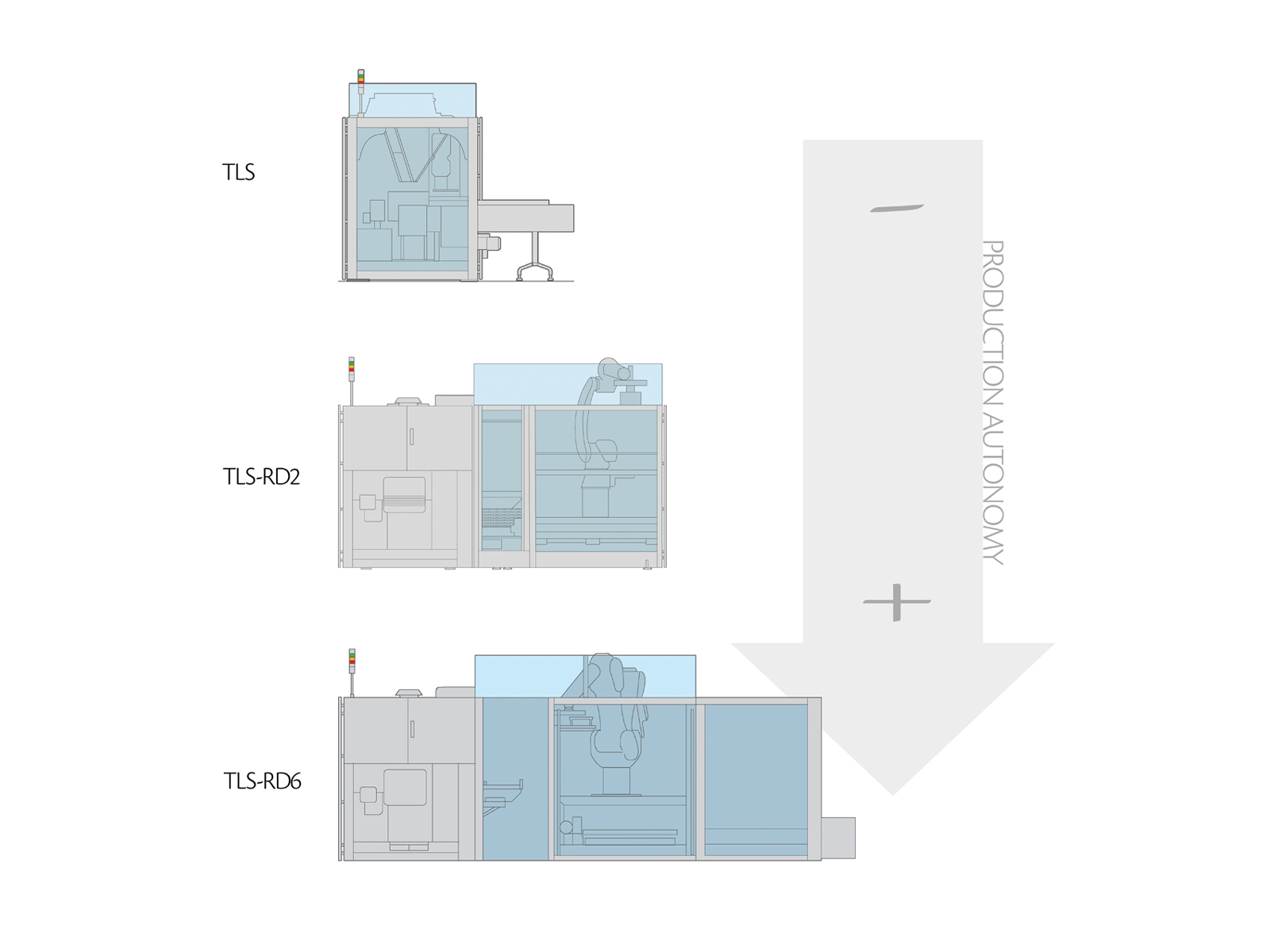 TLS is a robotic system able to load/unload products, like blow-filled seal containers, inhalers, pens or auto-injectors, from/to trays. This machine has been devised to enhance production line performance with great flexibility of functions, product handling and layout.