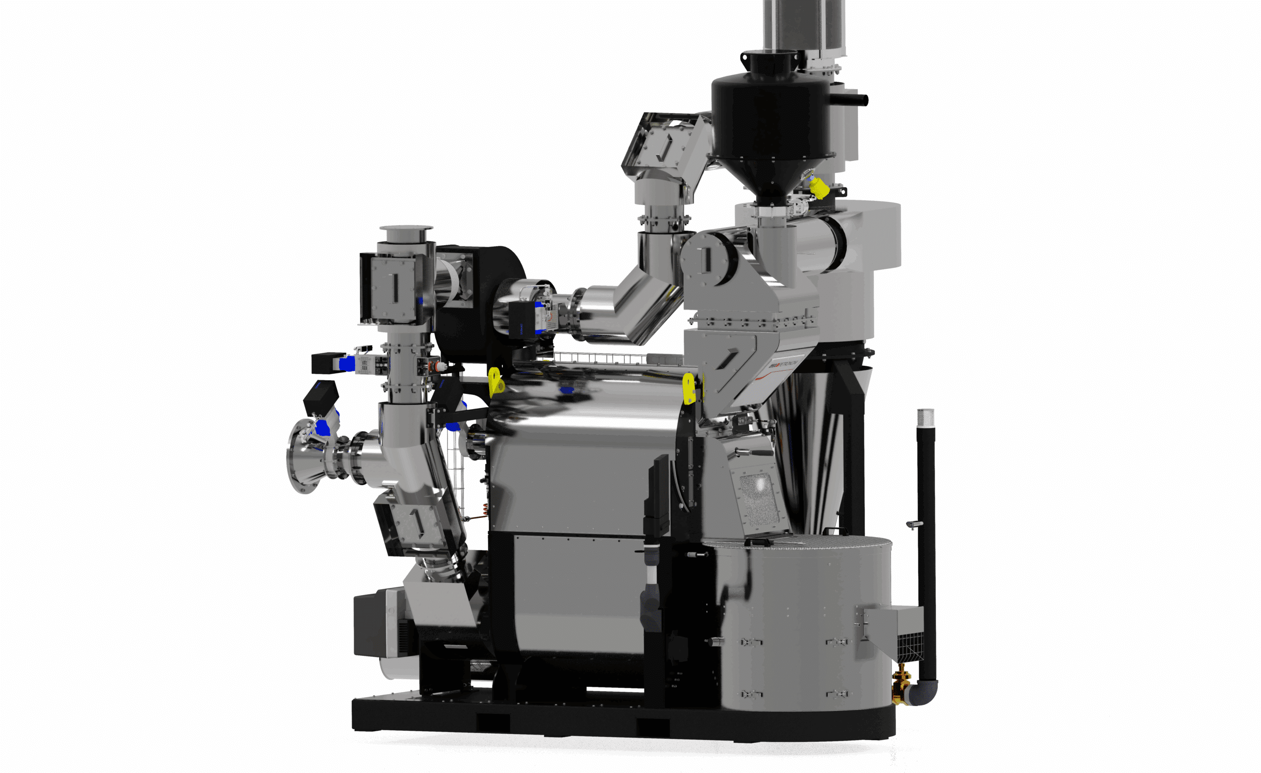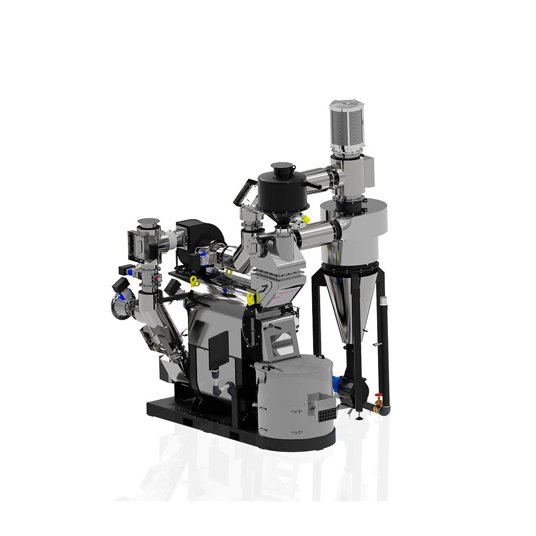 Additionally, the roaster is equipped with integrated sensors and digital control systems, enabling precise monitoring of roasting parameters and facilitating data-driven process optimisation for a modern sustainable coffee production.
