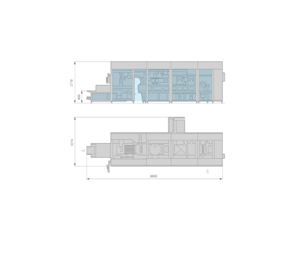 The pull-out operating system significantly reduces line downtimes resulting in a great efficiency increase. The entire production process can easily be monitored by a single operator performing all operations on the front side of the machine. The unique ergonomic cantilever design assures great accessibility for maintenance, service and easy cleaning both from the front and from the back side of the machine.