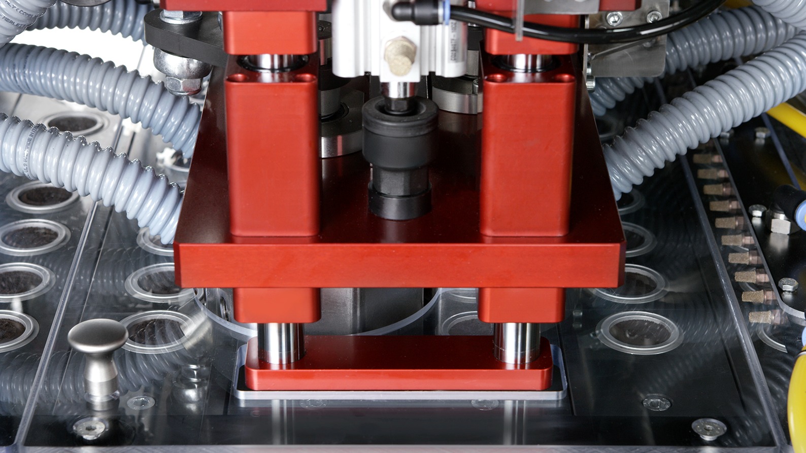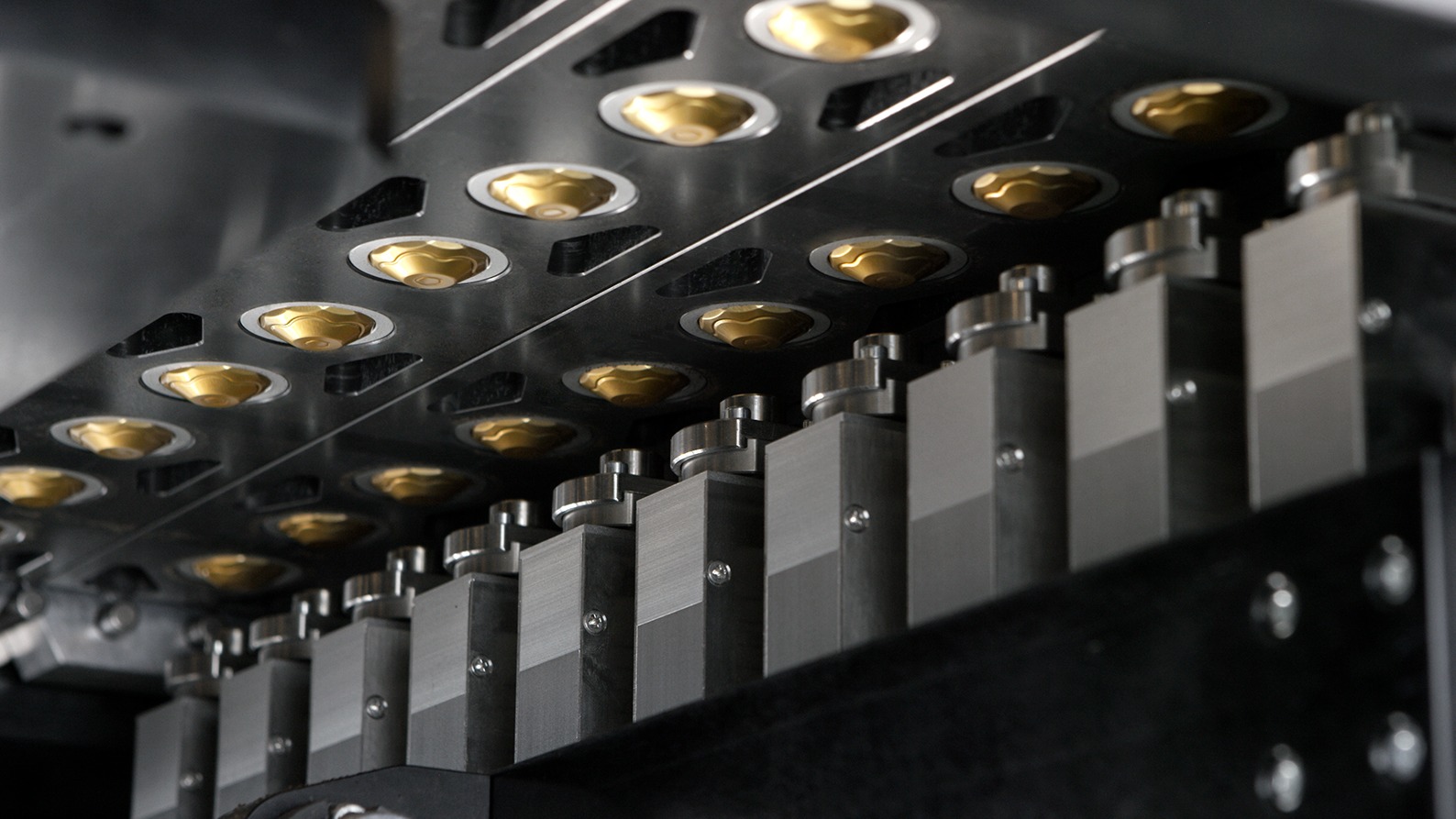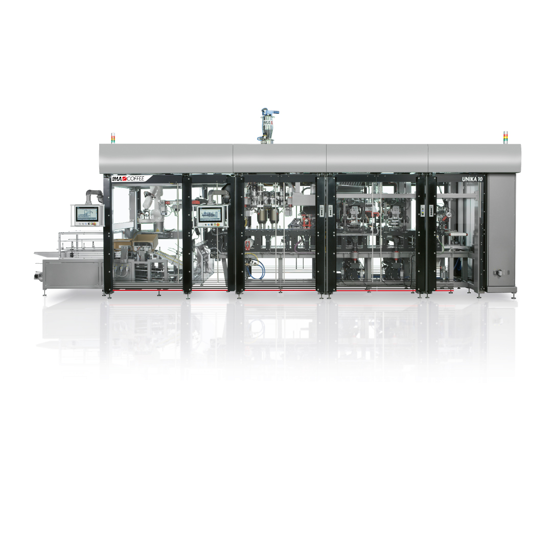 UNIKA is able to handle any capsule type available on the market, fed in bulk or stacked. The denester is a space-saving cost-effective solution to feed stackable capsules. The centrifugal unscrambler allows handling of all capsule types, stackable and non-stackable, granting high autonomy. A robotized depacker unit is available for Nespresso compatible aluminum stacked capsules only. Capsules can be closed at the top with aluminum film, micro perforated, filter paper, triplex coupled, PP and compostable lid. Filters and diaphragms can be inserted into capsules and on their bottom.