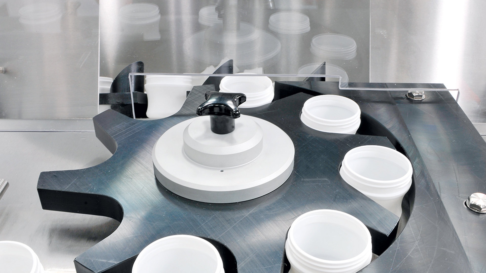 With few quick release change parts the system can be easily changed over to different bottle formats in 5 minutes without the use of tools.