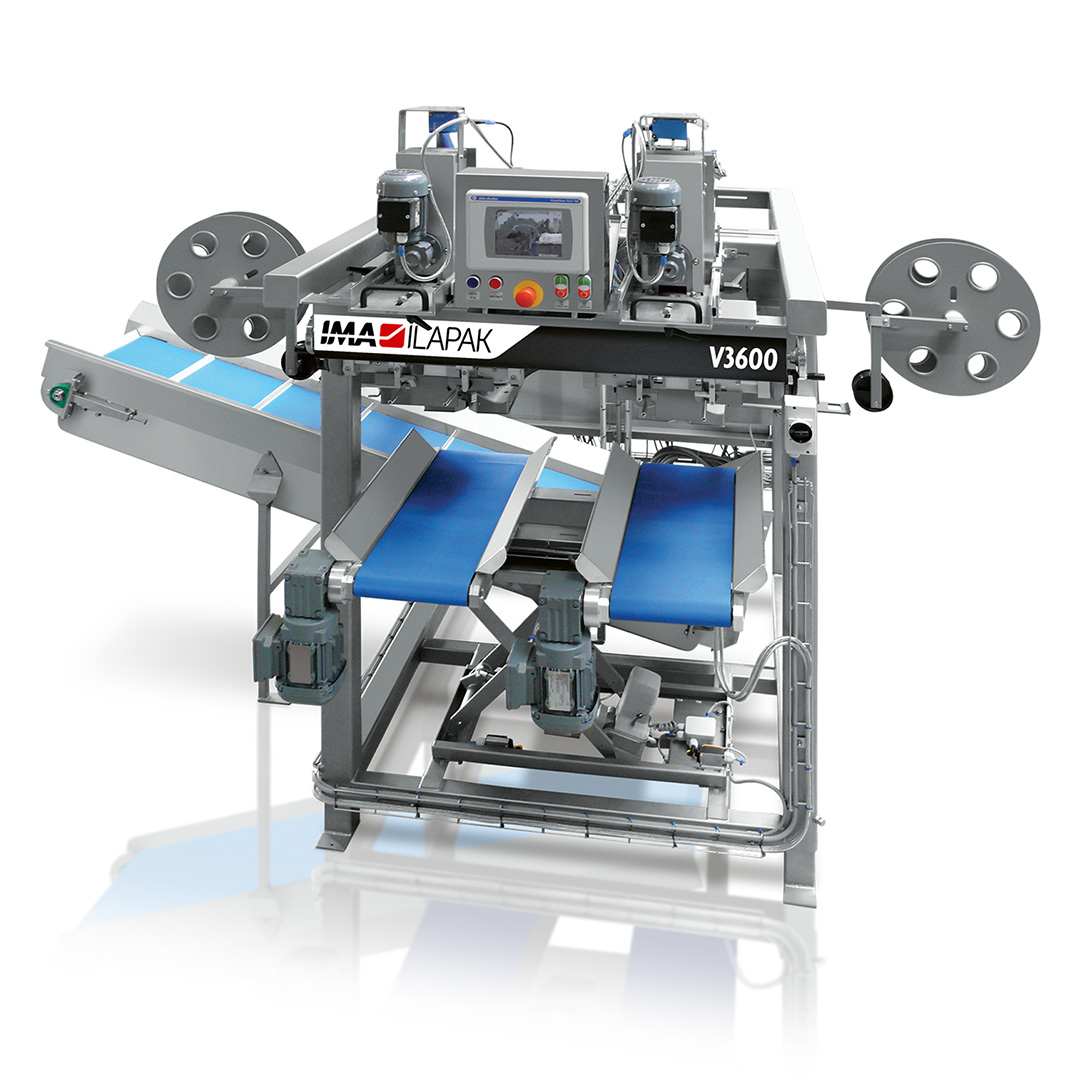 The IMA Ilapak V3600 is a robust, high-speed wicketed bagger that integrates two independent bagging heads within a single, space-efficient frame.