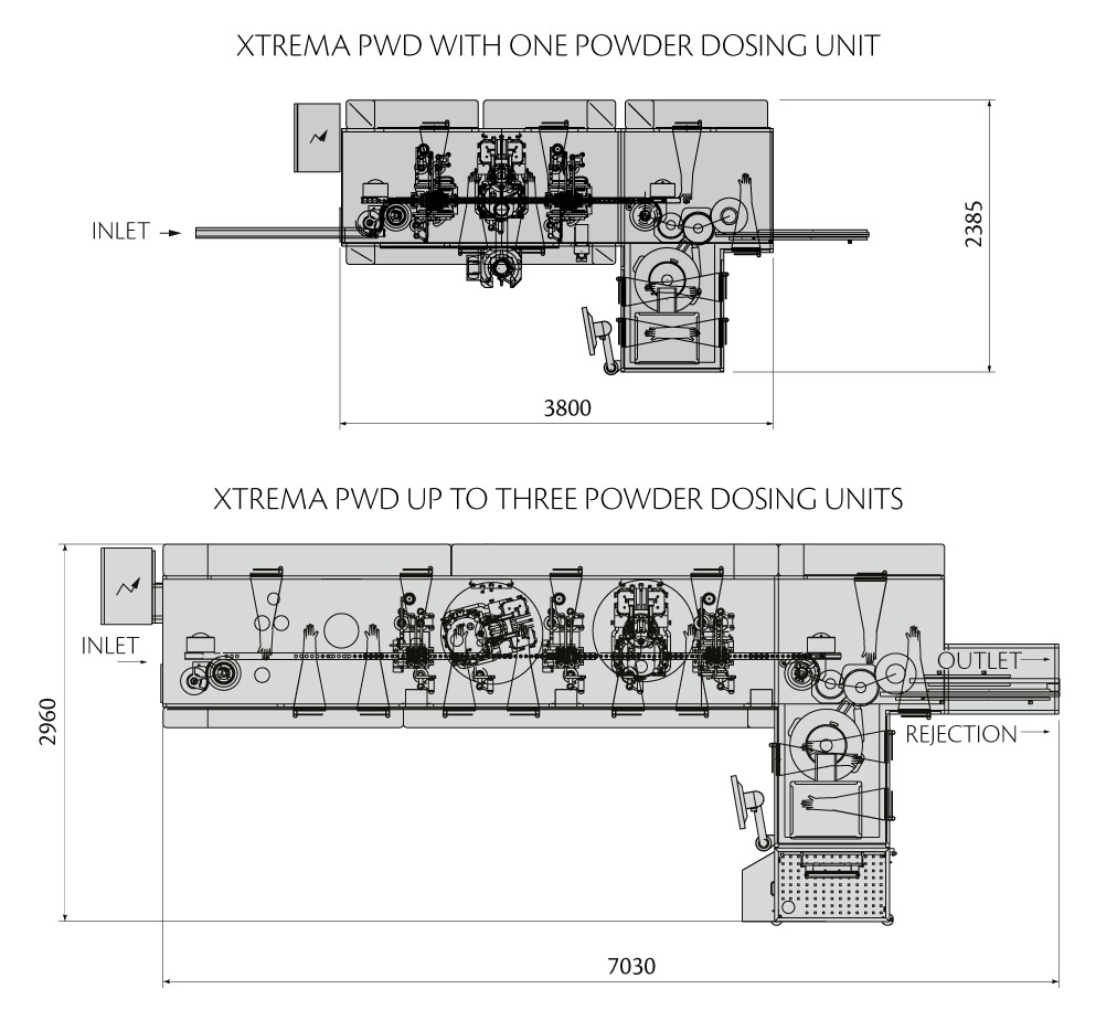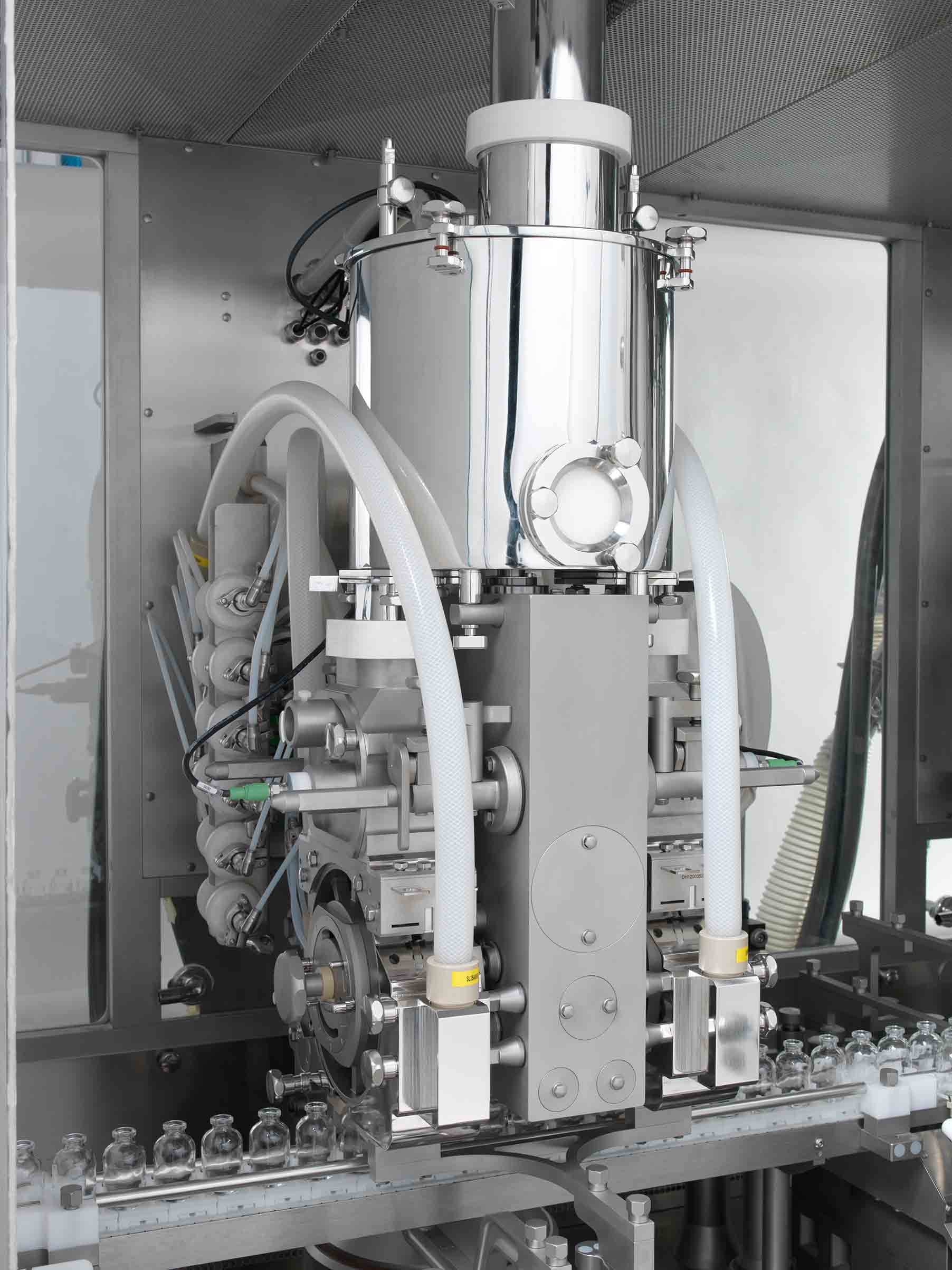 Up to three dosing units allow the individual filling of different types of powders in the same vial with 100% IPC at full operating speeds of 400 vpm.