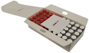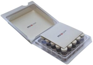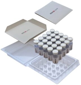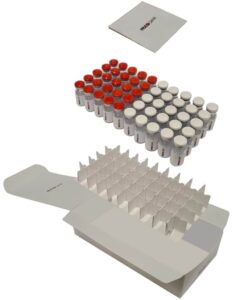 - 25 vials – The tray is a single-piece (clamshell) with an integrated lid