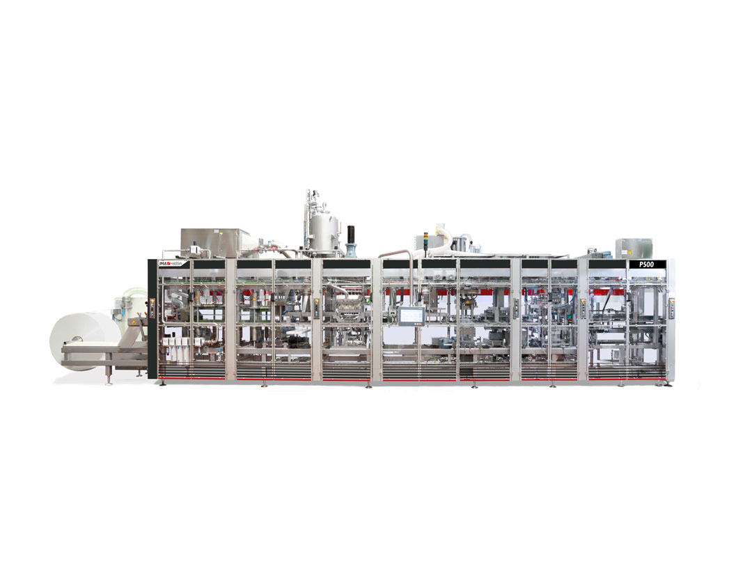 You can have a look on this high-performance form, fill and seal machine processing portion cups for a lot of dairy and food applications. On the machine in final assembly the customer will fill soup paste into portion cups.