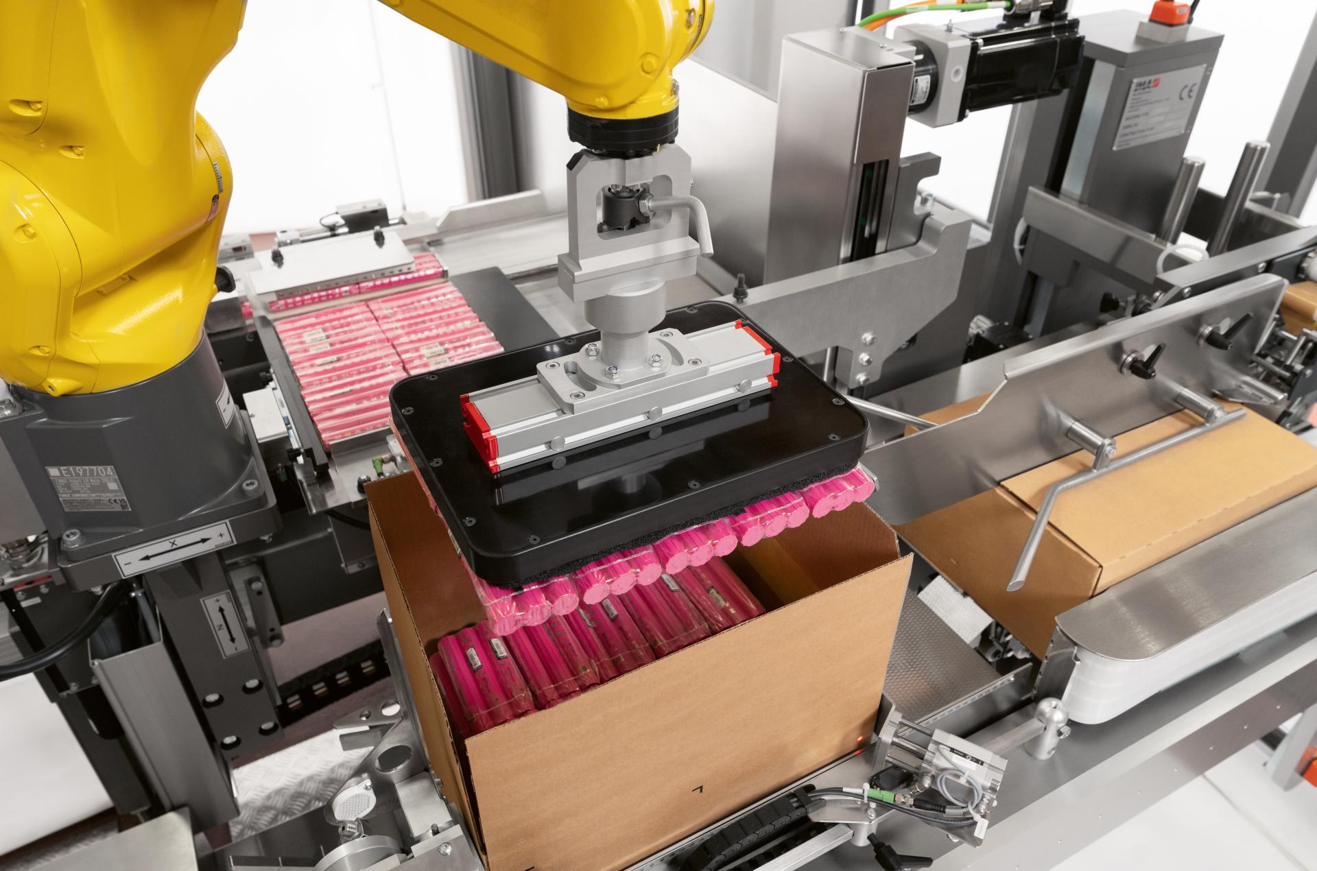 Automatic case packing machines ergonomically built to handle all product shapes and types, and providing total control throughout all stages of the packaging process. Highly compact, they can be integrated with palletizers or used as stand-alone case packers, reaching speeds of up to 50 cases/min.