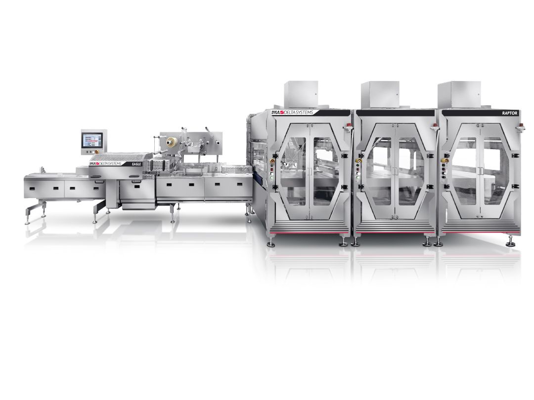 IMA comprehensive distribution solutions include buffer storage, refeed modules, row removal, staging, gentle product handling, and precise timing.