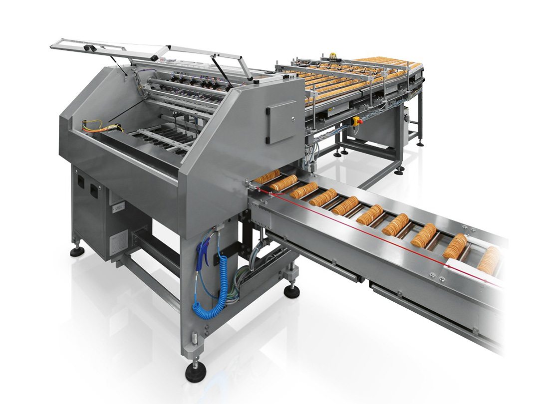 IMA also feature cross-belt feeding systems and product alignment technologies to manage products arriving randomly, along with robotic pick-and-place or loading robots that can feed directly into the wrapper infeed or pre-group products onto conveyors for seamless flow wrapping. Additionally, the portfolio includes automatic counting and portioning systems for biscuits, crackers, and rusks, whether on edge or in piles, as well as tailored grouping solutions for buns and other bakery products. -
