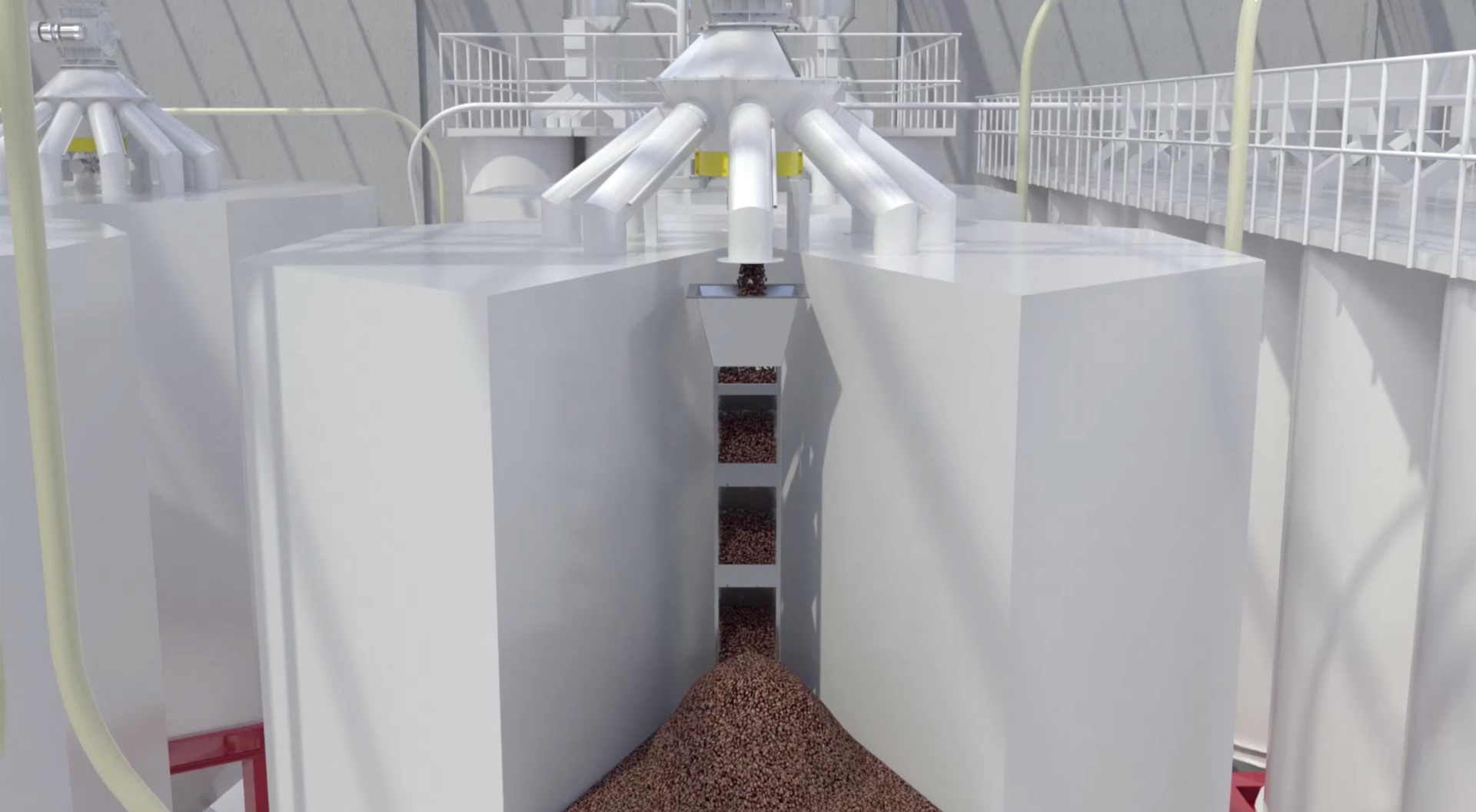 IMA offers flexible storage solutions for both green and roasted coffee, tailored to different capacities, shapes, and space availability. Green coffee can be stored in square, polygonal, or circular silos—indoors or outdoors—equipped with rotary distributors and weighing devices for efficient processing. Roasted coffee silos are designed to protect bean integrity during handling, featuring shock-absorbing systems to prevent damage and blockages, with capacities ranging from hundreds of kilograms to several tons. The range also includes advanced degassing systems, from natural nitrogen injection to accelerated vacuum-based processes.