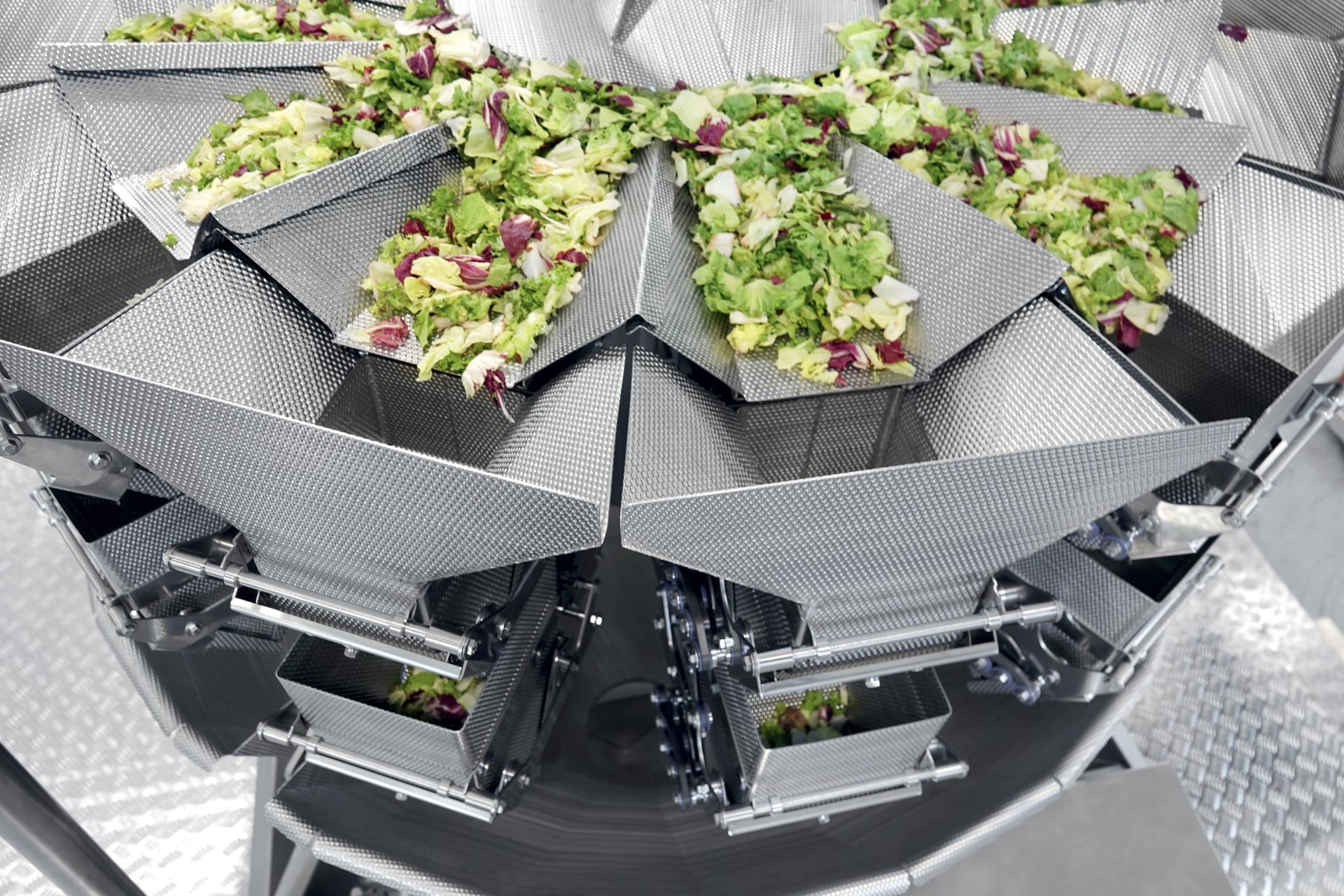 Multi-head weighing for cut salad